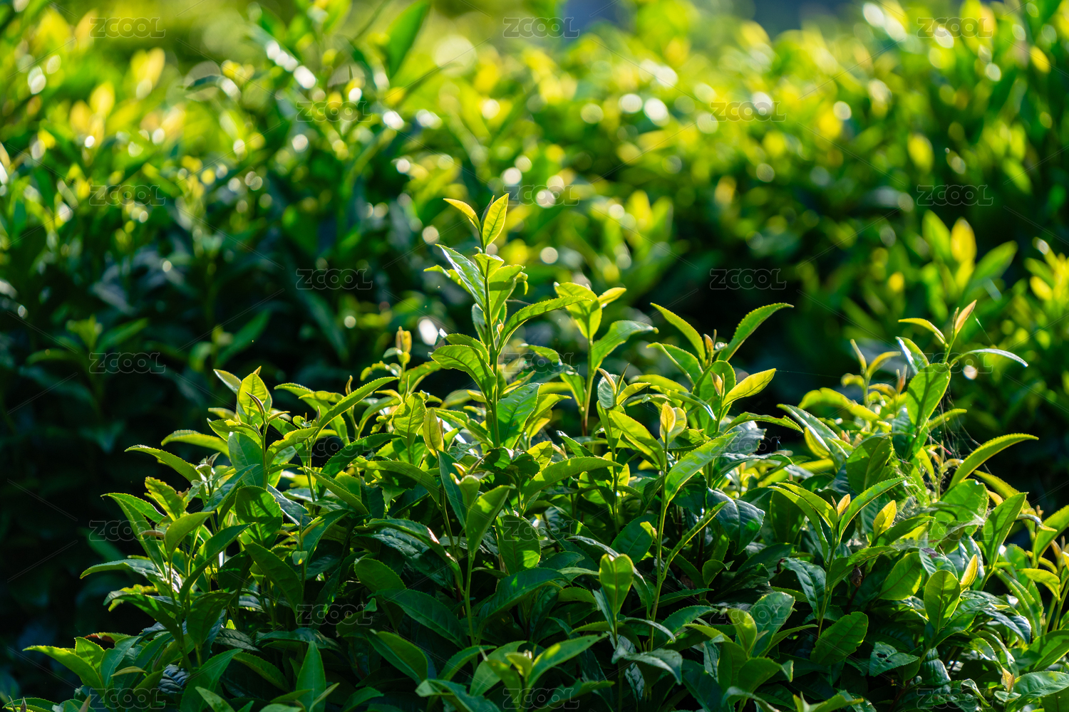 惠州柏塘绿茶茶园清晨时分茶树上的新鲜嫩芽