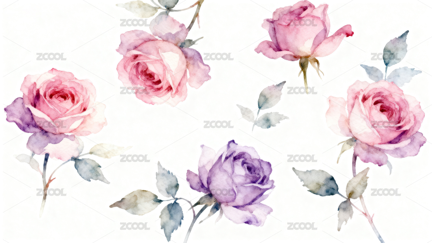 以粉白玫瑰、薰衣草为主体的花卉插画素材,背景为柔和粉色 ,花朵形态优美,色彩清新淡雅,营造出浪漫、温馨氛围,可用于装饰画、文创设计、社交媒体配图等,为相关创作增添柔美诗意风格 。