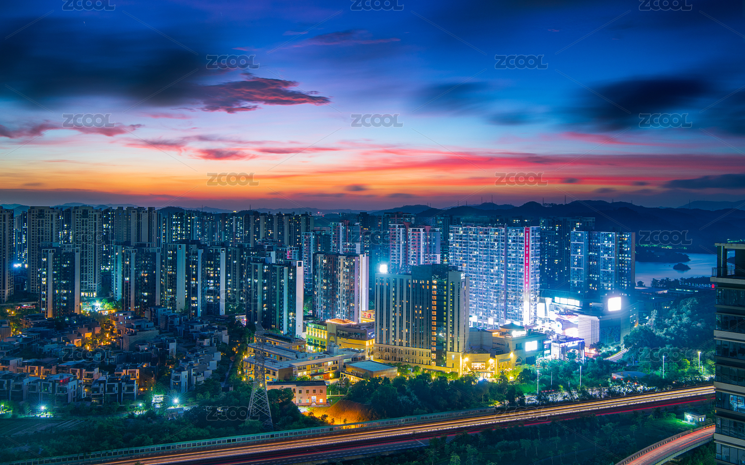 城市景观,道路,建筑,工业建筑,天际线,都市风光,日出,清晨,金黄,希望
