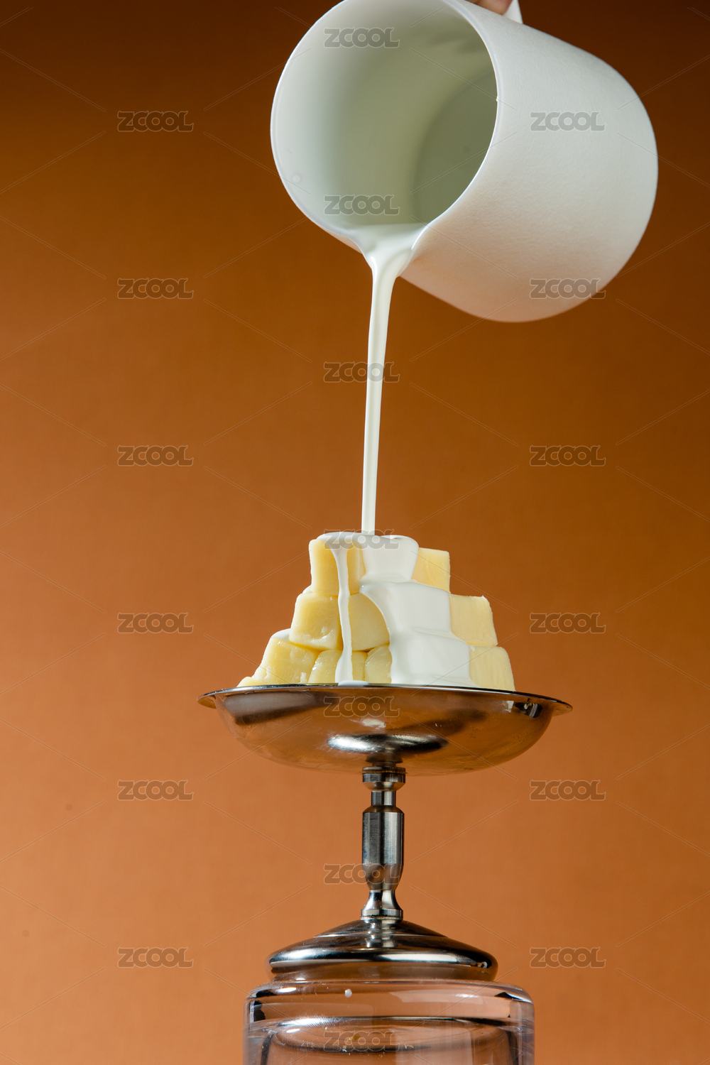 牛奶,倾倒,块状物,液体,流动,滴漏,器皿,容器,金属底座,玻璃杯
