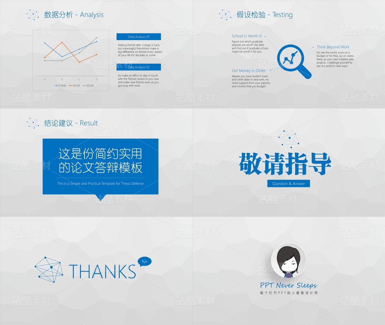 D03【低面多边形&学术蓝】一份简约实用的论文答辩模板
