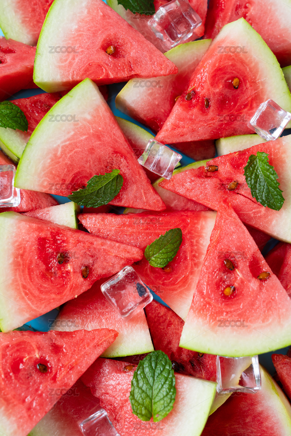背景,西瓜,夏天,夏季,水果,切开,切块,冰块,清凉,红色