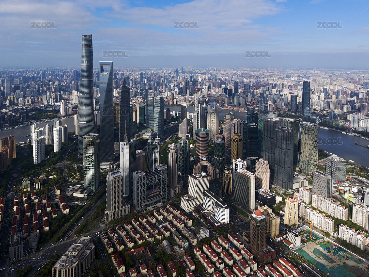 中国上海浦东陆家嘴金融城航拍建筑风光
