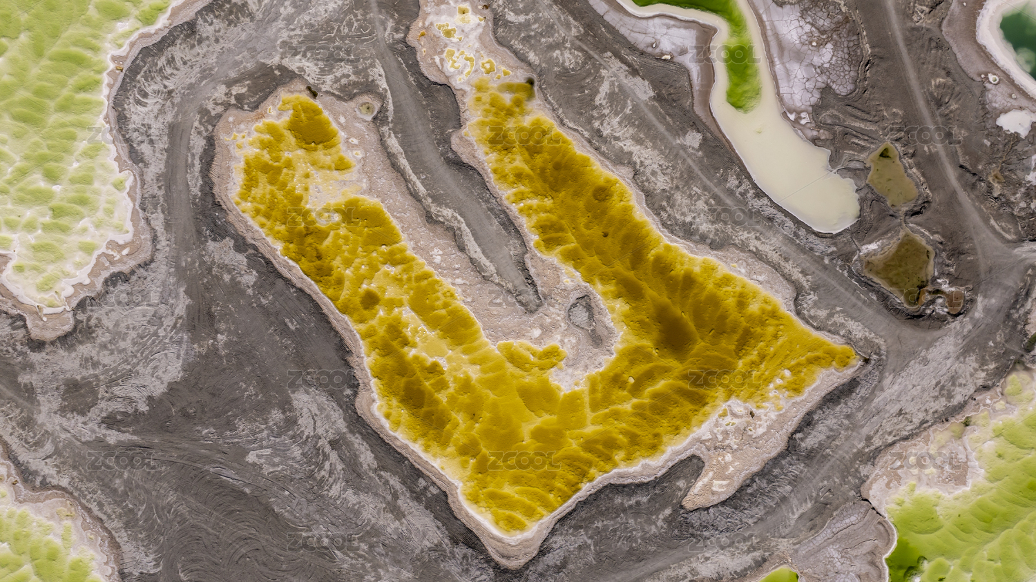 青海省大柴旦翡翠湖盐湖金色湖水航拍