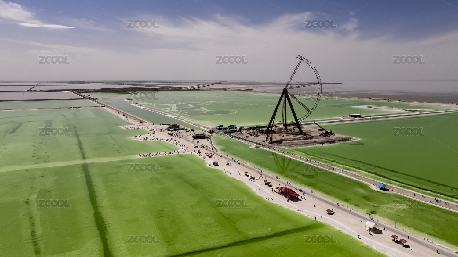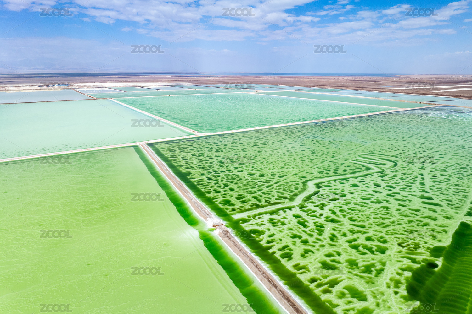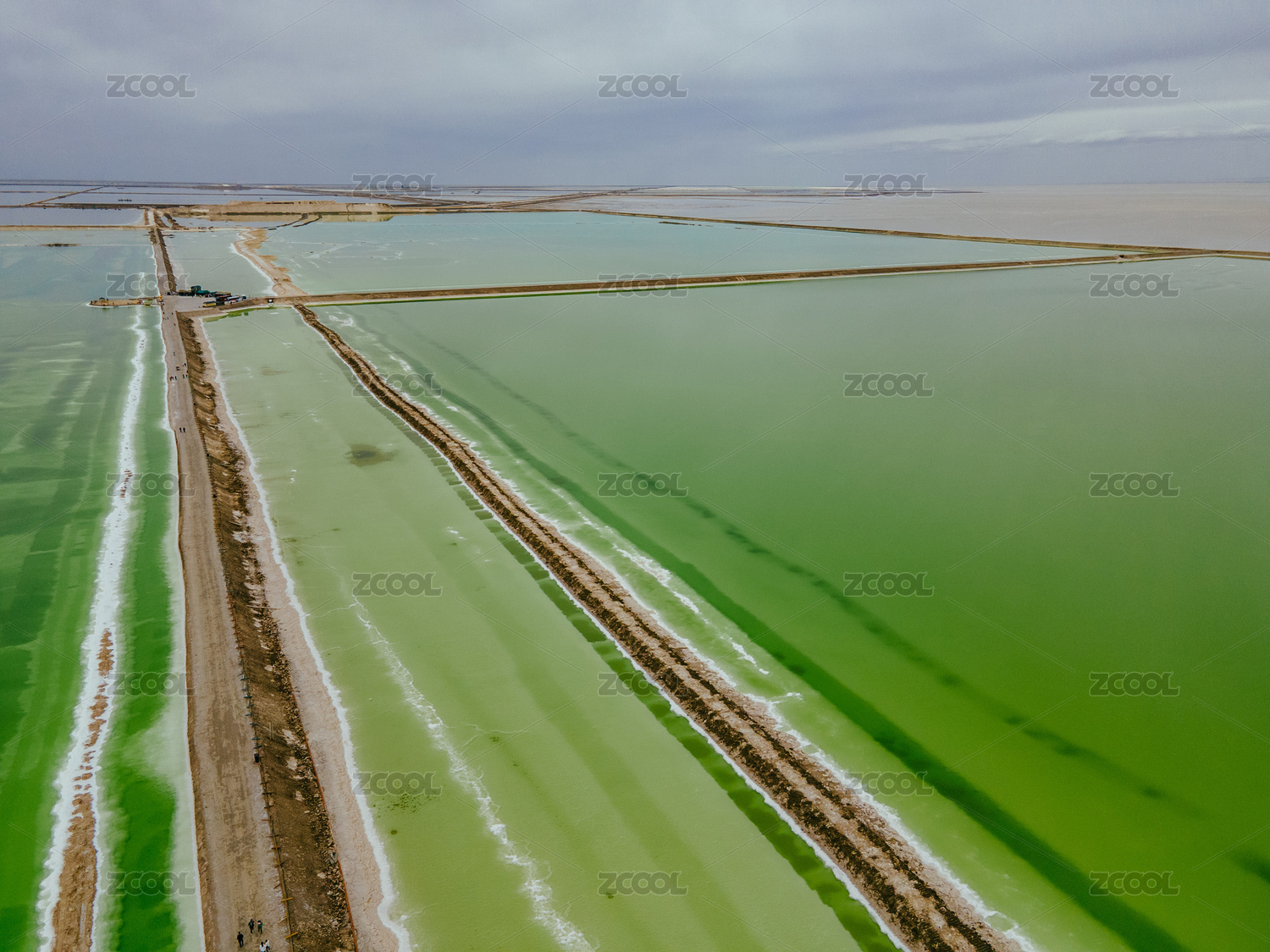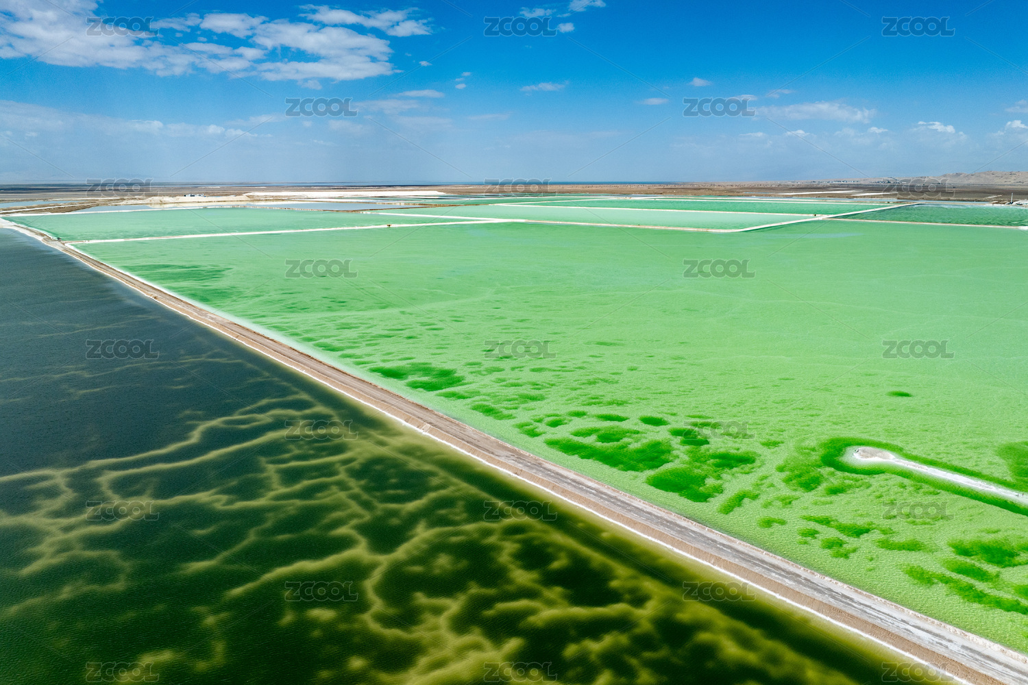 青海海西芒崖翡翠湖盐湖风光绿色工业盐湖泊