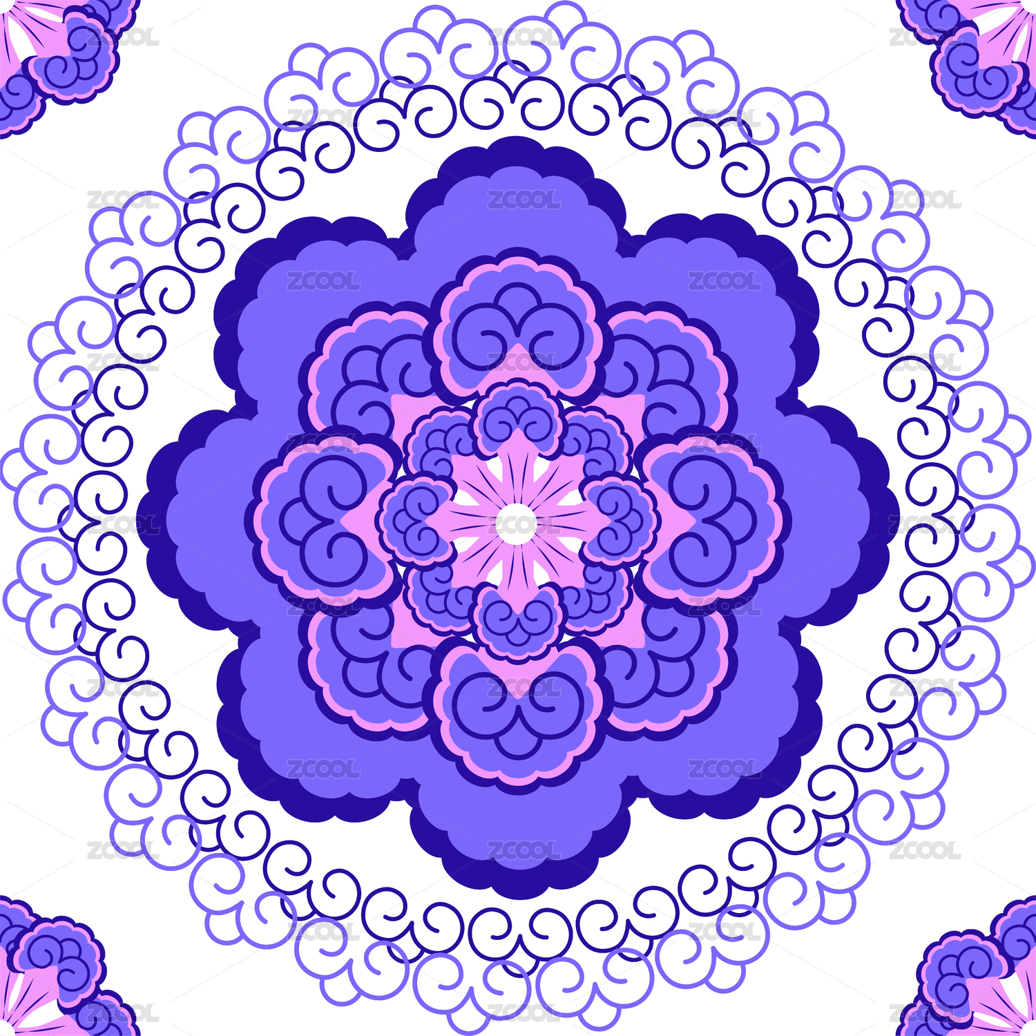紫底团花莲花蝙蝠卷草福寿中国纹样插画