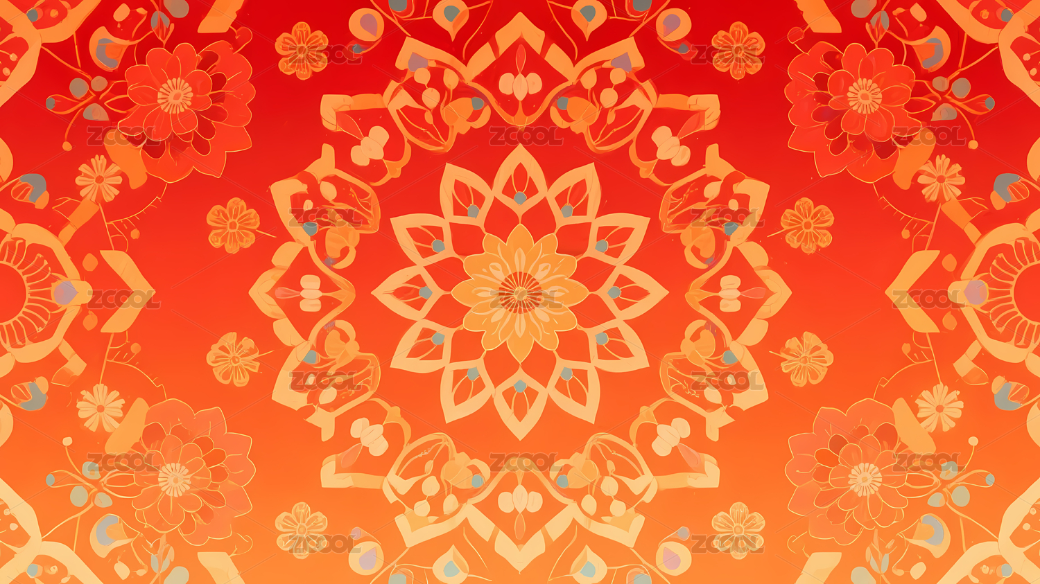 珊瑚红,菊花,莲花,荷花,牡丹花,卷草纹,吉祥,长寿,纹样