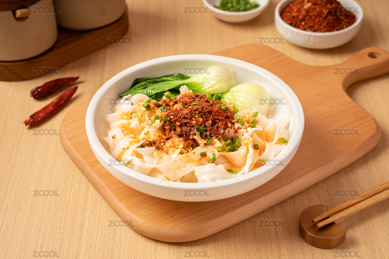 木桌背景一碗陕西特色油泼面