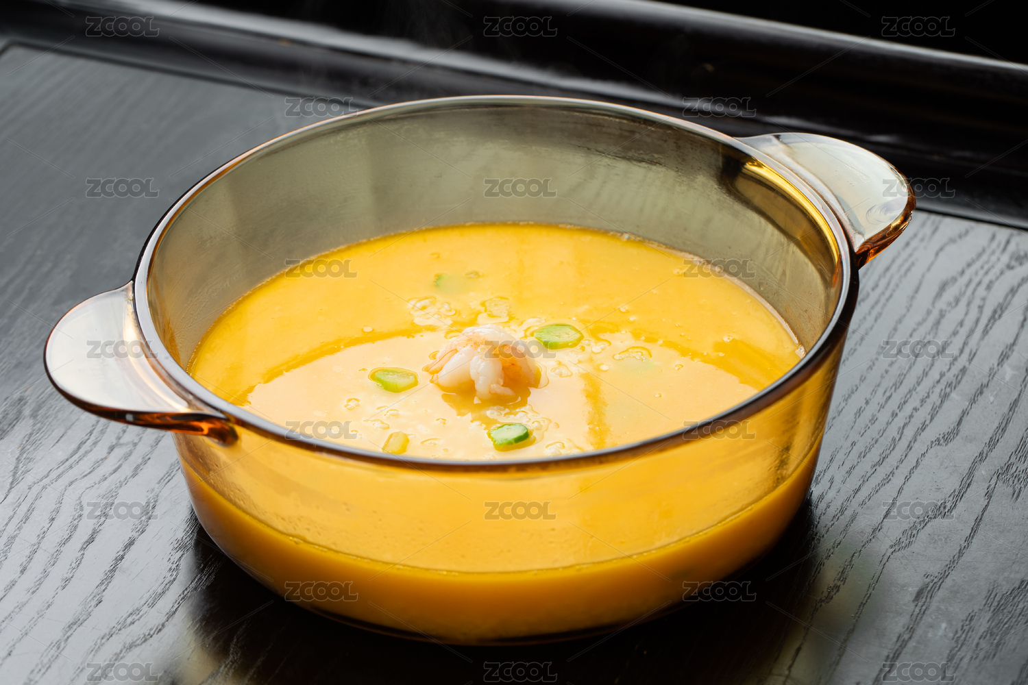 桌面上的碗里的美味可口的南瓜汤