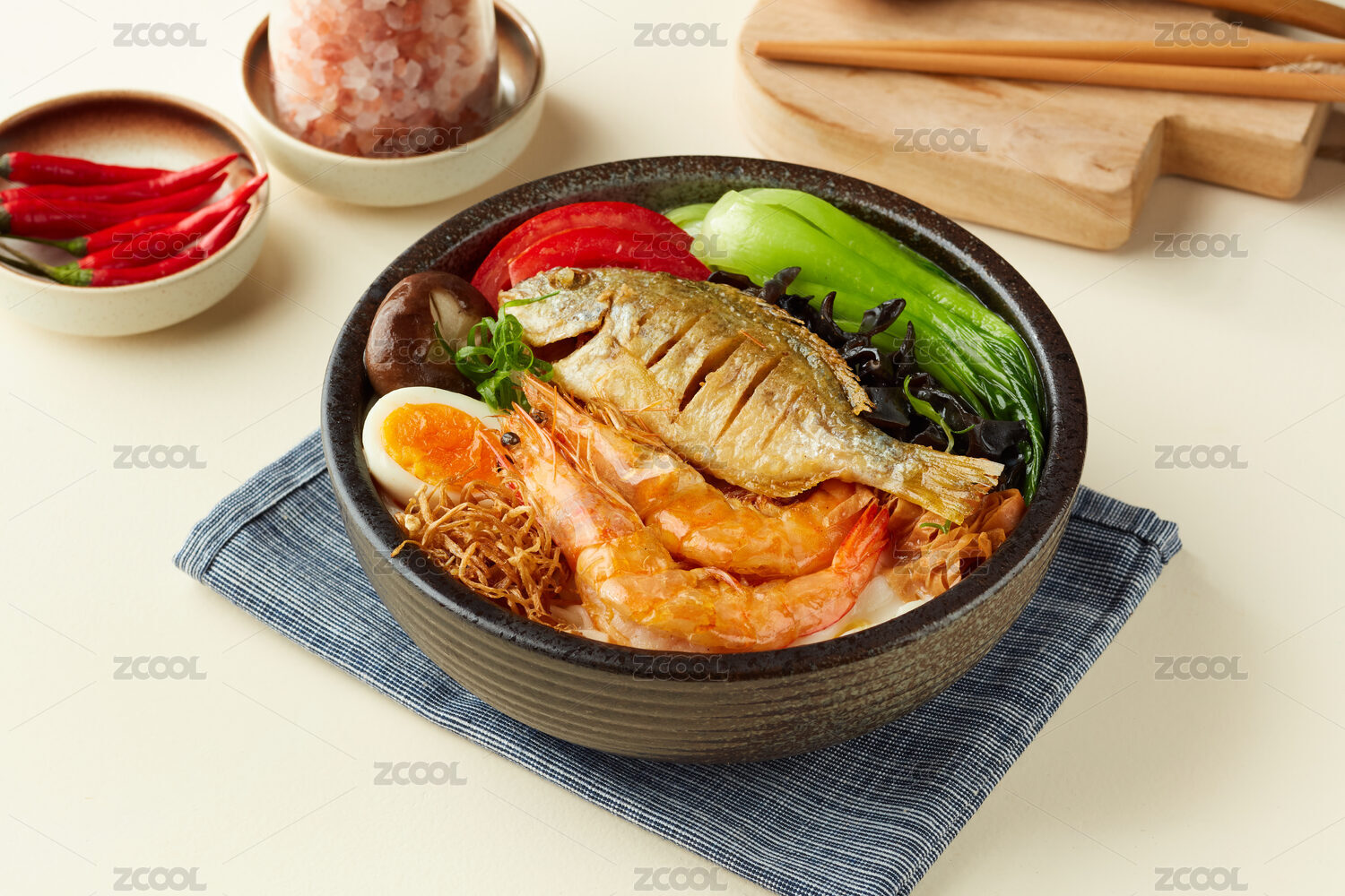 白色桌面上有一碗牛油果三文鱼杂粮饭
