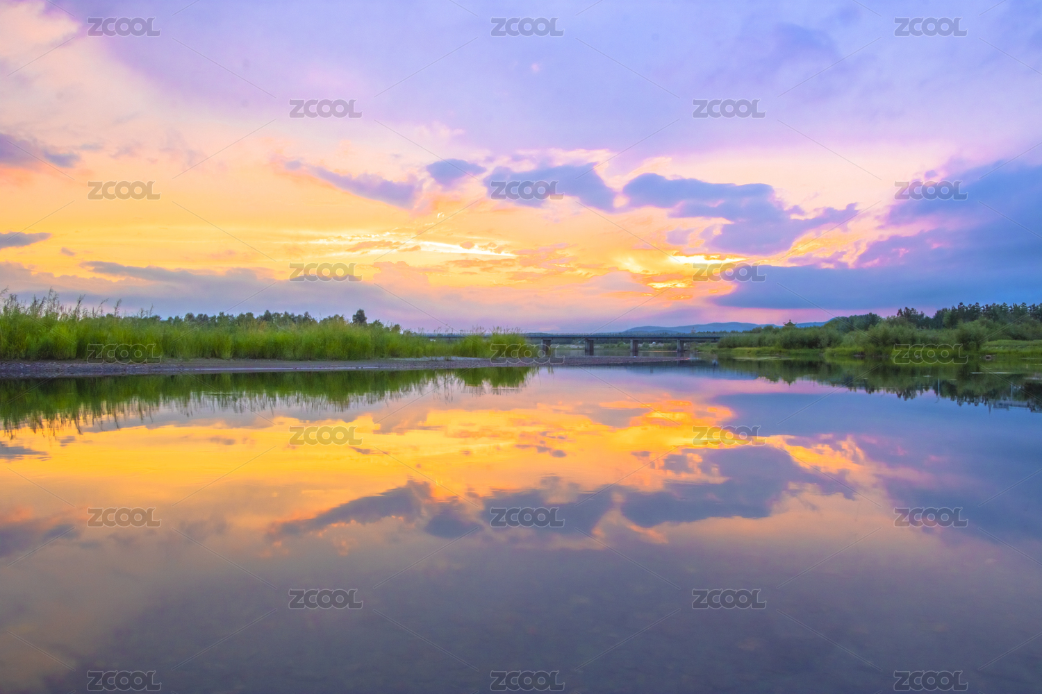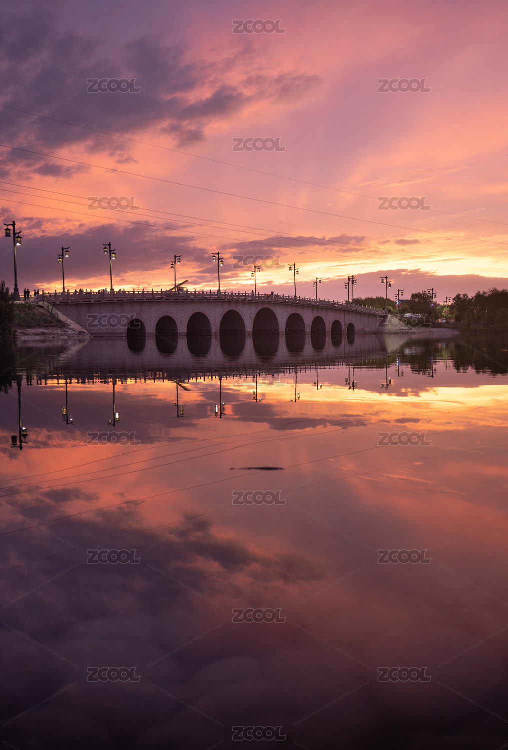 桥,反射,水,天空,云,晚霞,湿地,宁静,风景,自然