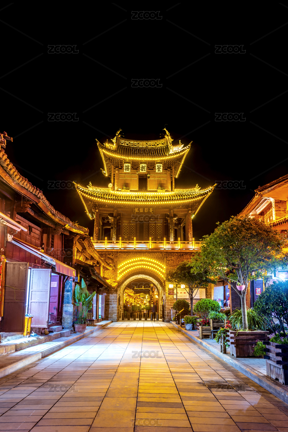 中国云南大理巍山古城星拱楼夜景风光
