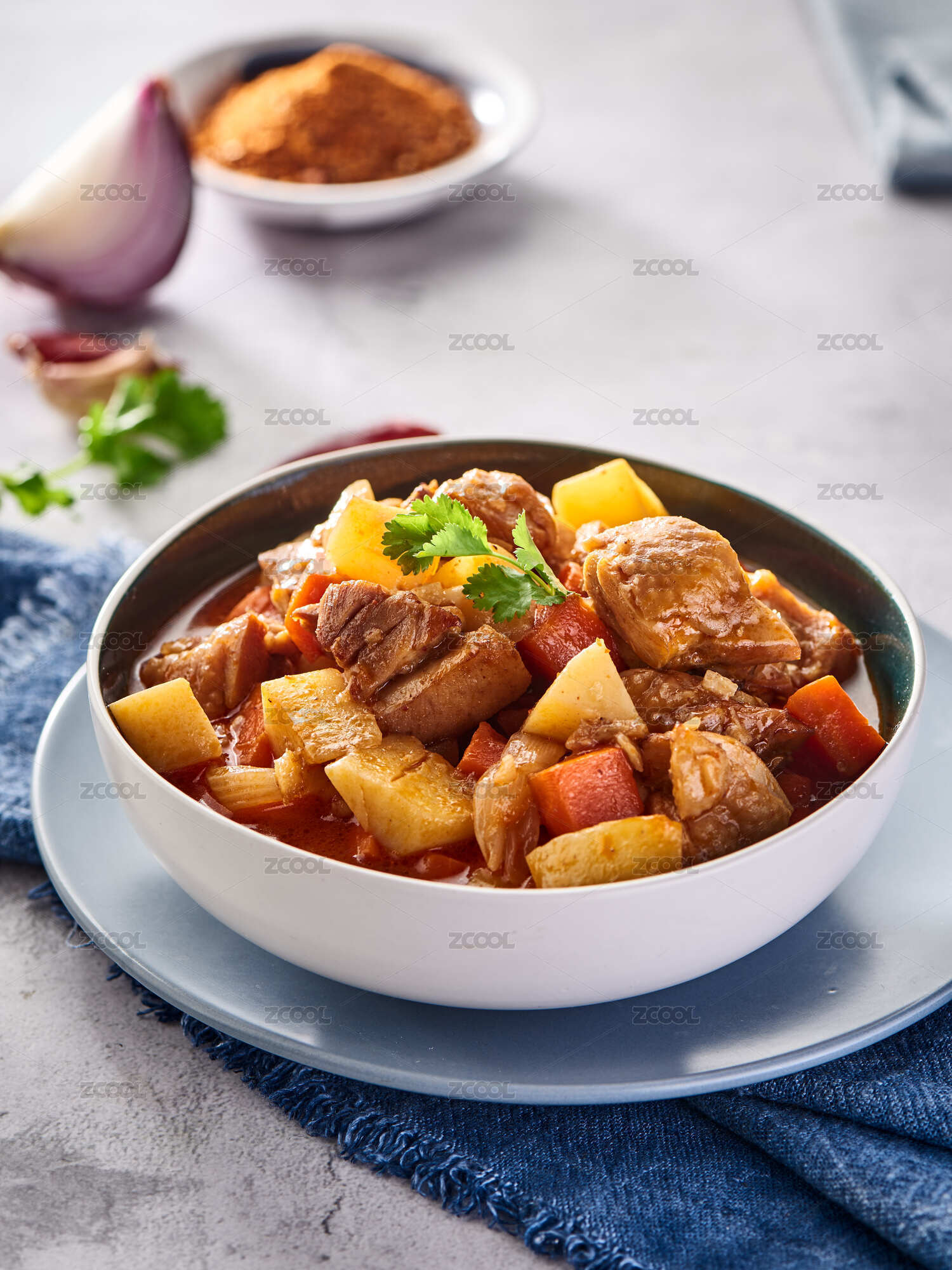 东南亚风味咖喱土豆炖猪肉配白米饭