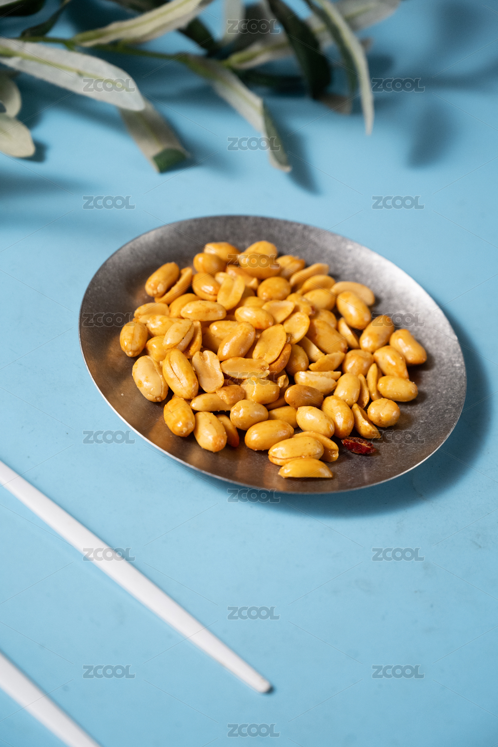 桌面上的盘子里的美味可口的皱皮花生