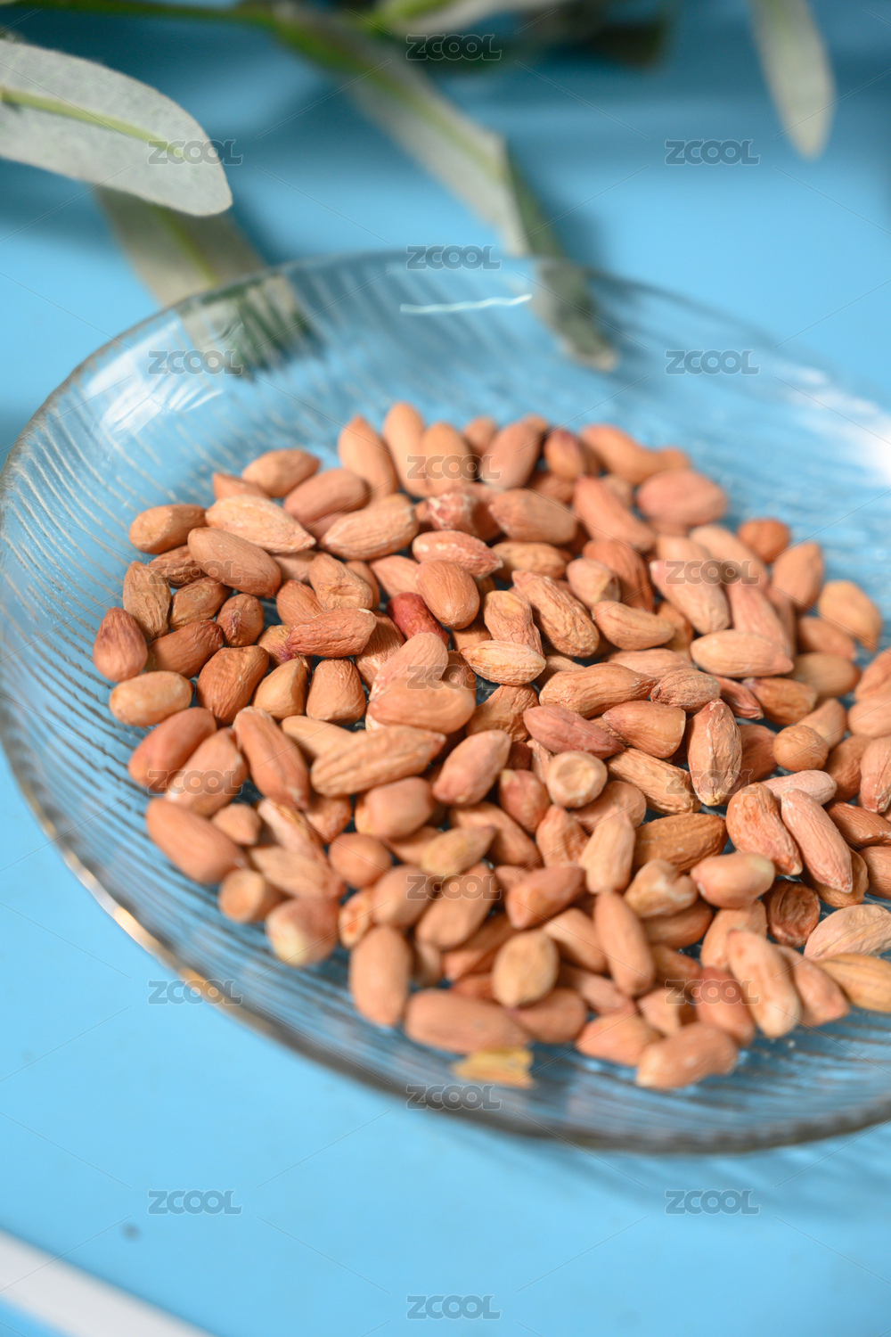 桌面上的盘子里的美味可口的皱皮花生