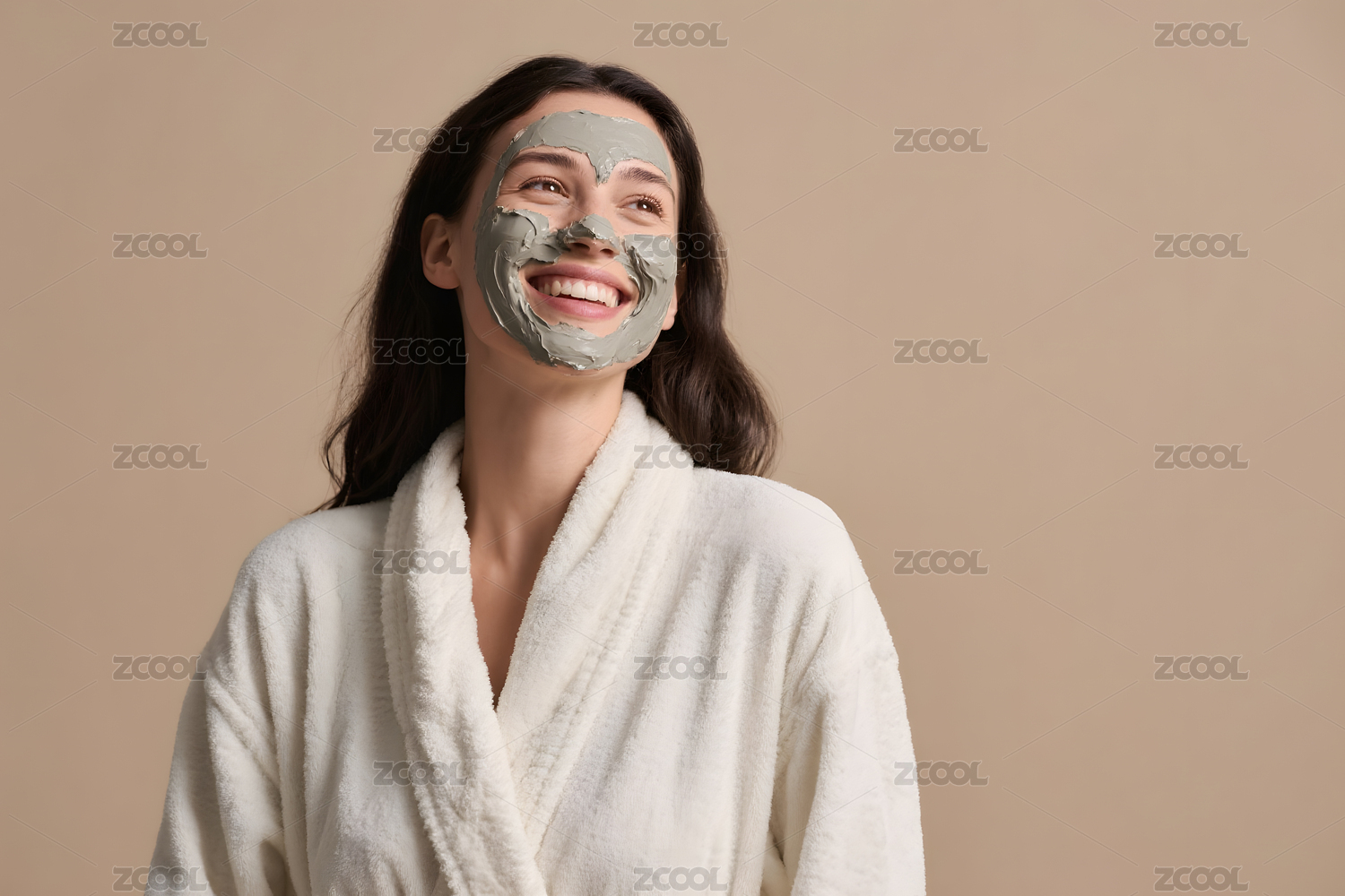 正在使用清洁泥膜做脸部清洁的女士美容护肤