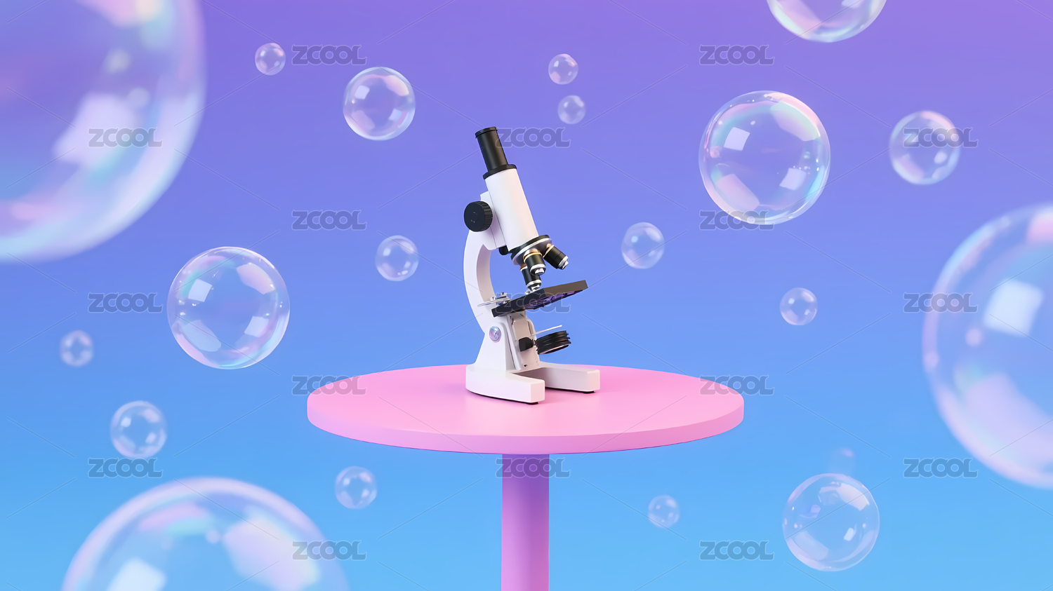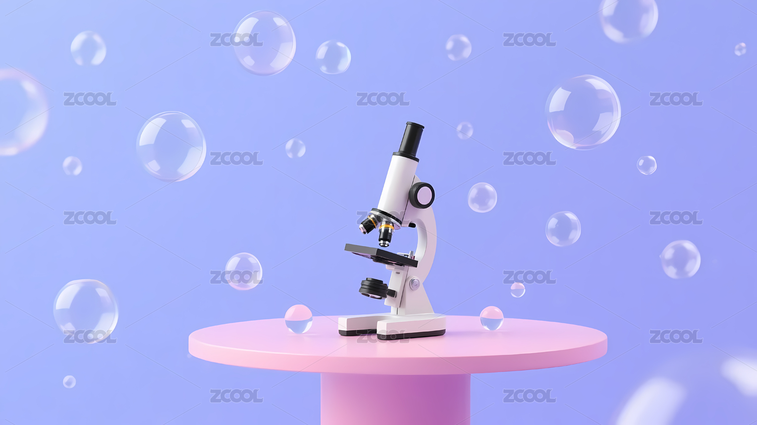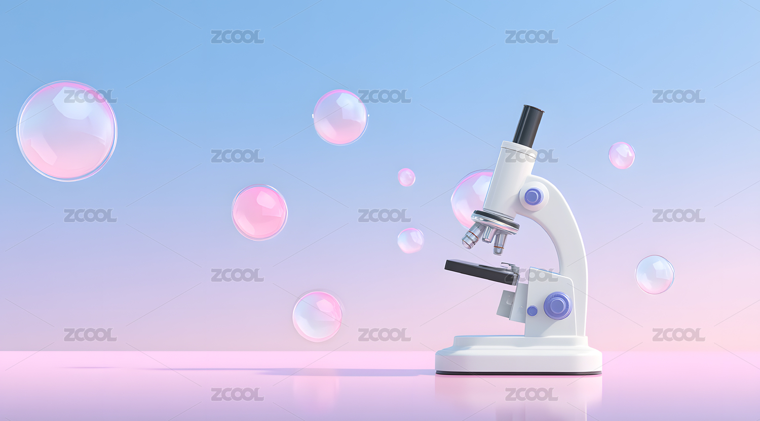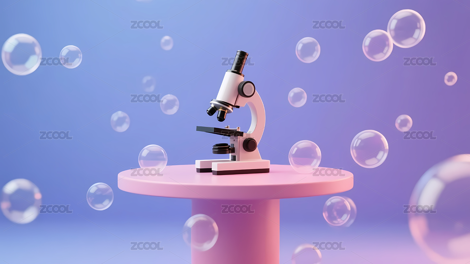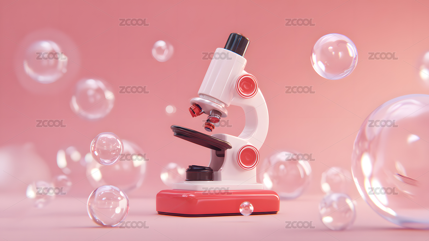 显微镜,粉色平台,彩色气泡,科学,探索,微观世界,研究,实验,教育,医疗
