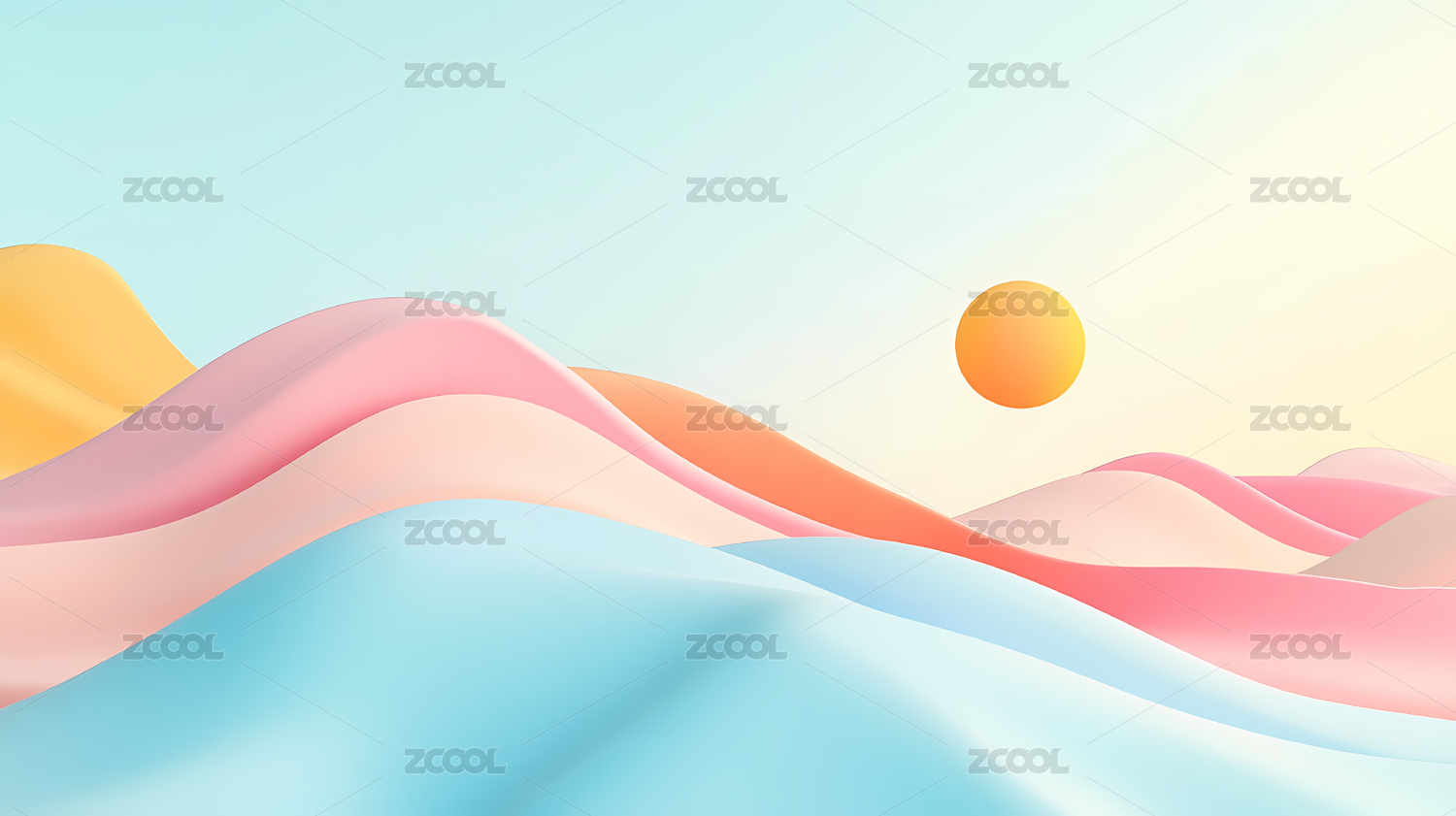 蓝天,太阳,曲线,波浪,红色,黄色,蓝色,渐变,自然,温暖
