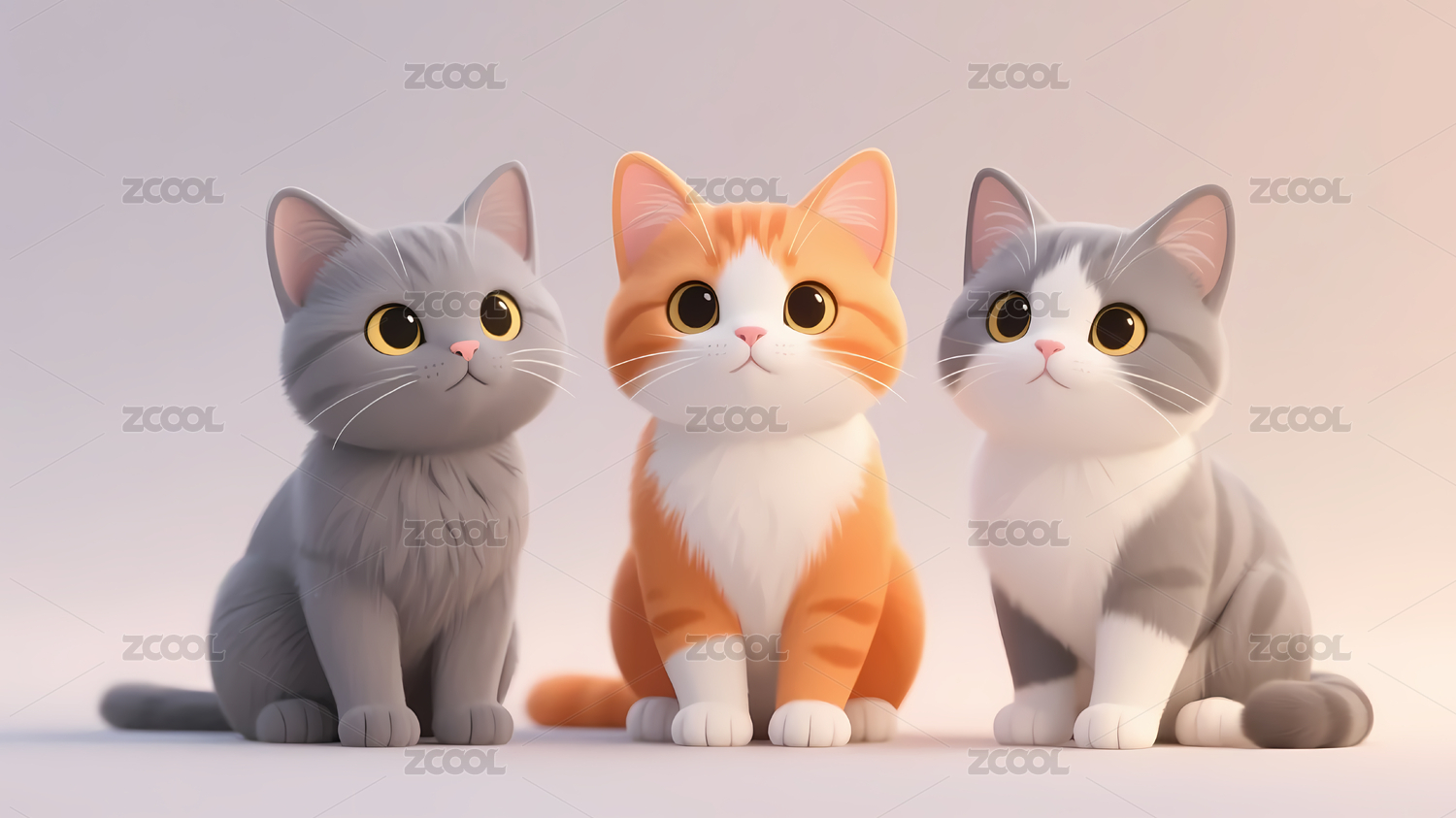 三只卡通猫咪浅色渐变