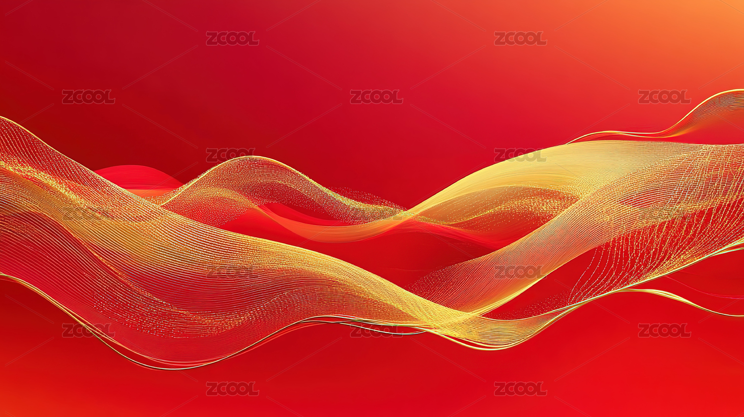 红色背景金色波浪光影图案