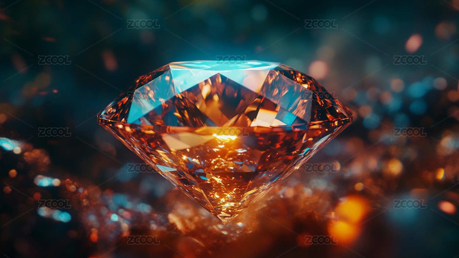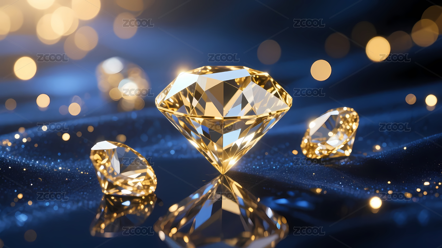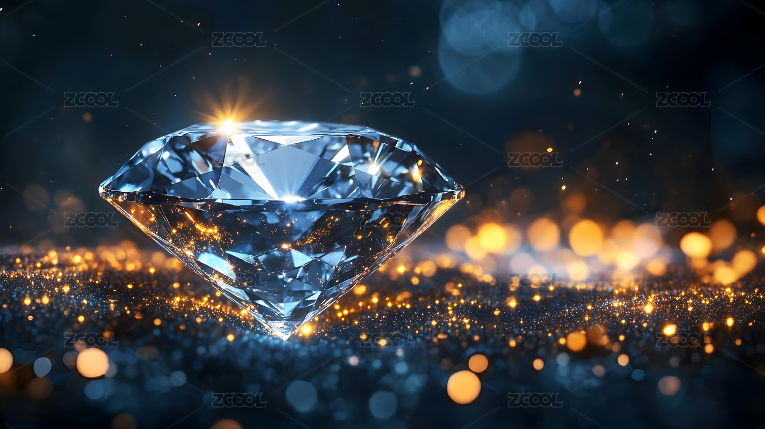 在蓝色光斑背景下闪耀的璀璨钻石