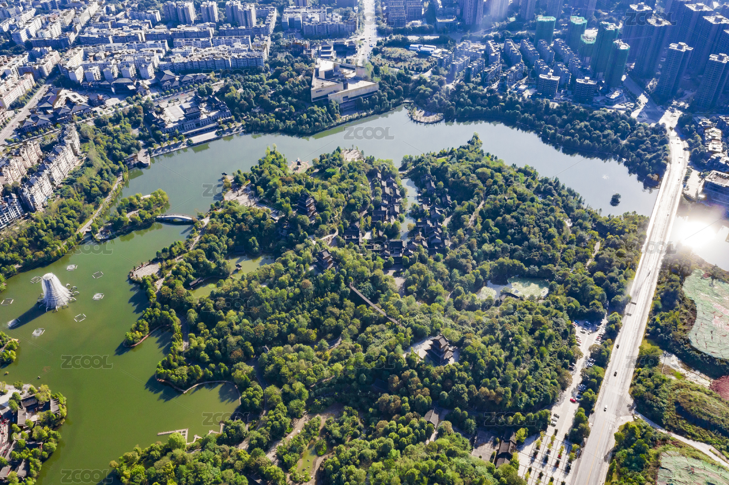 四川成都天府新区华阳南湖公园及周边建筑航