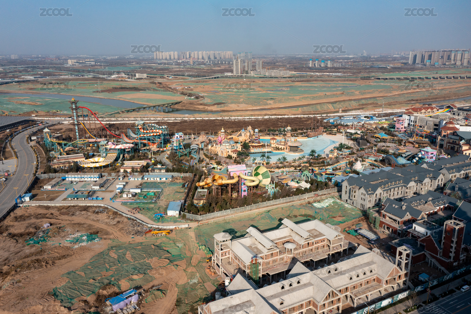 西安乐华城游乐园航拍,主题公园,乐园,航拍,娱乐设施,过山车,水上乐园,游乐场,乐华城游乐园,西安乐华城