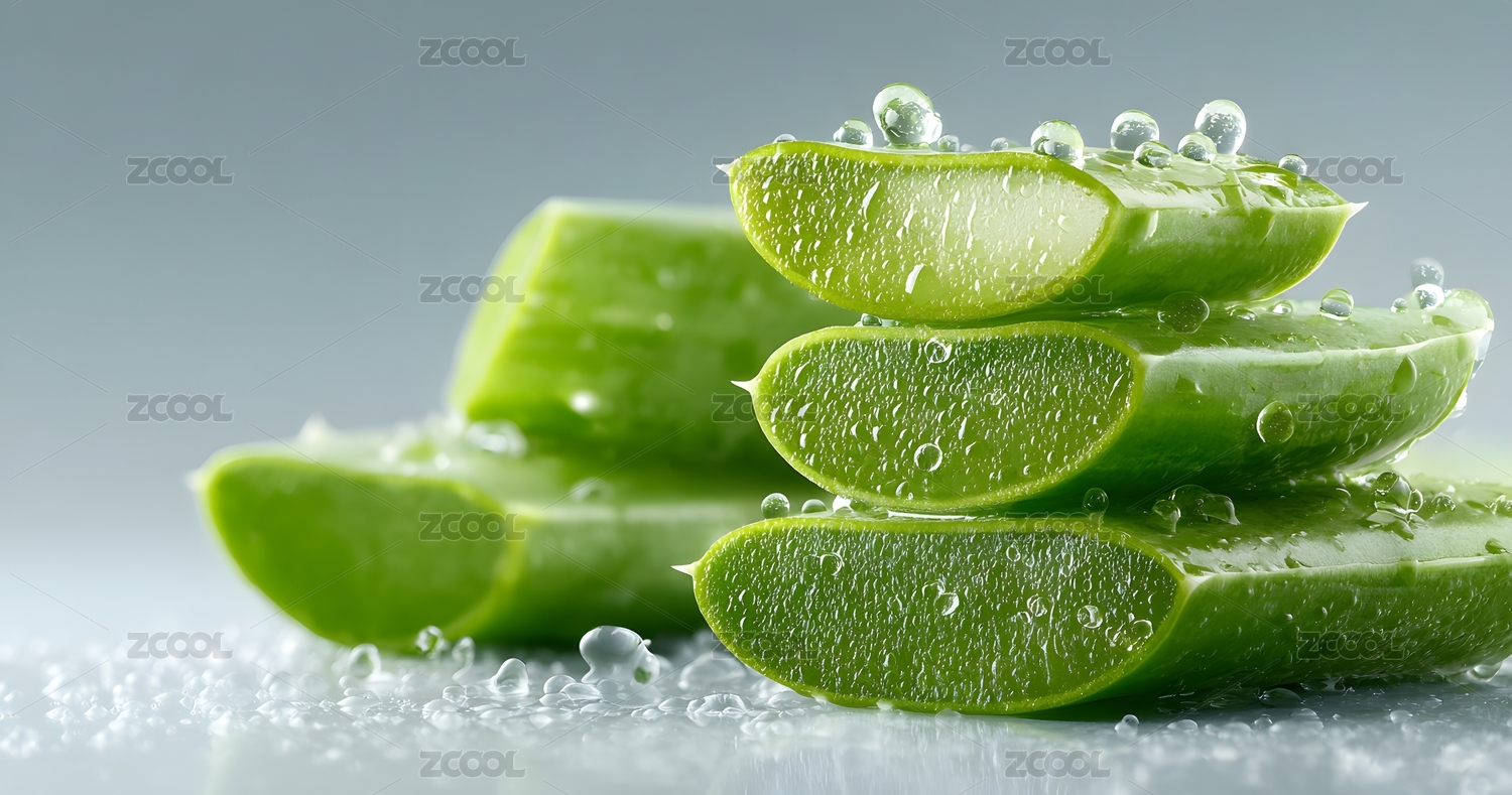 翠绿芦荟切片特写,滋润清新