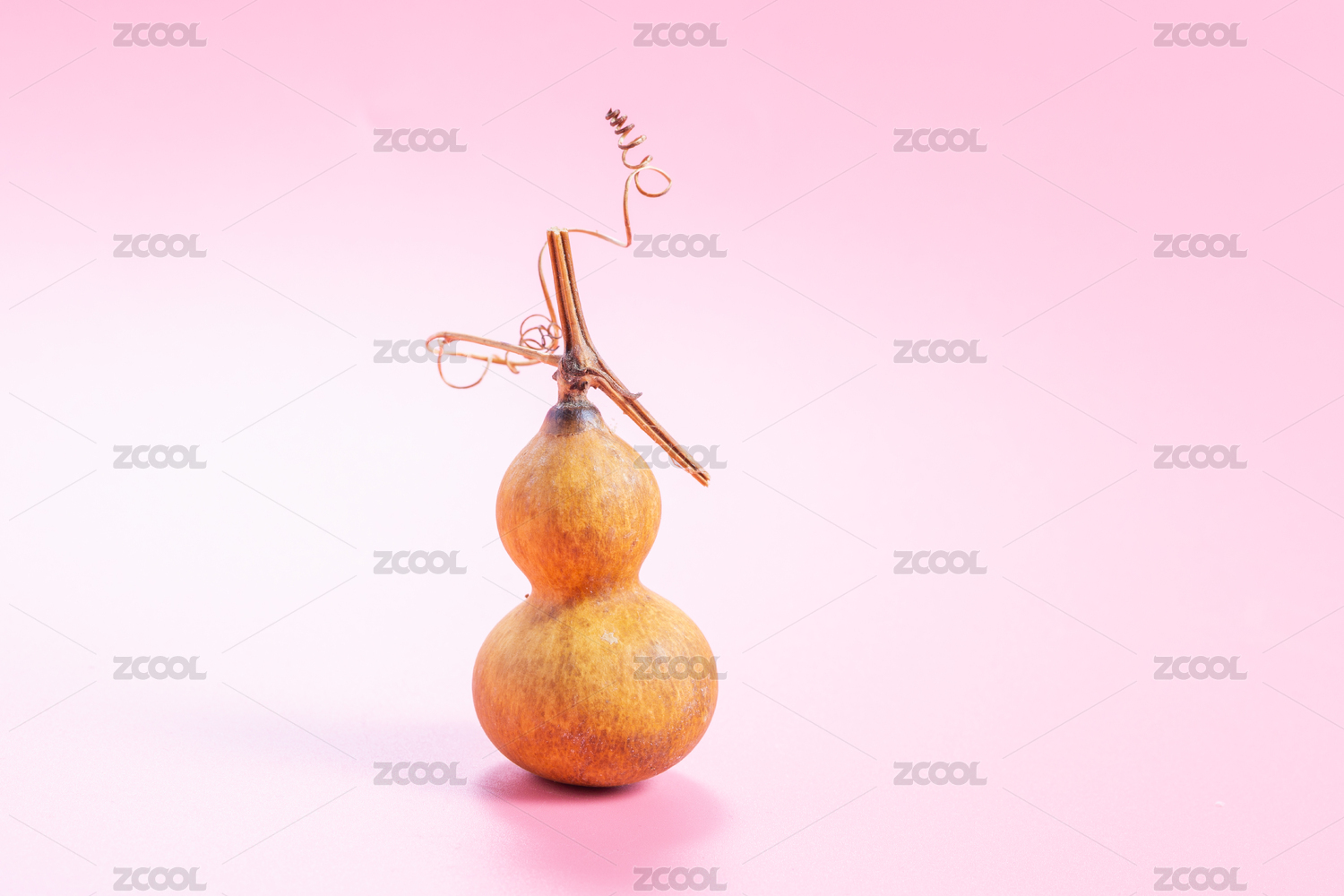粉色背景和黄色成熟的文玩葫芦果实特写镜头