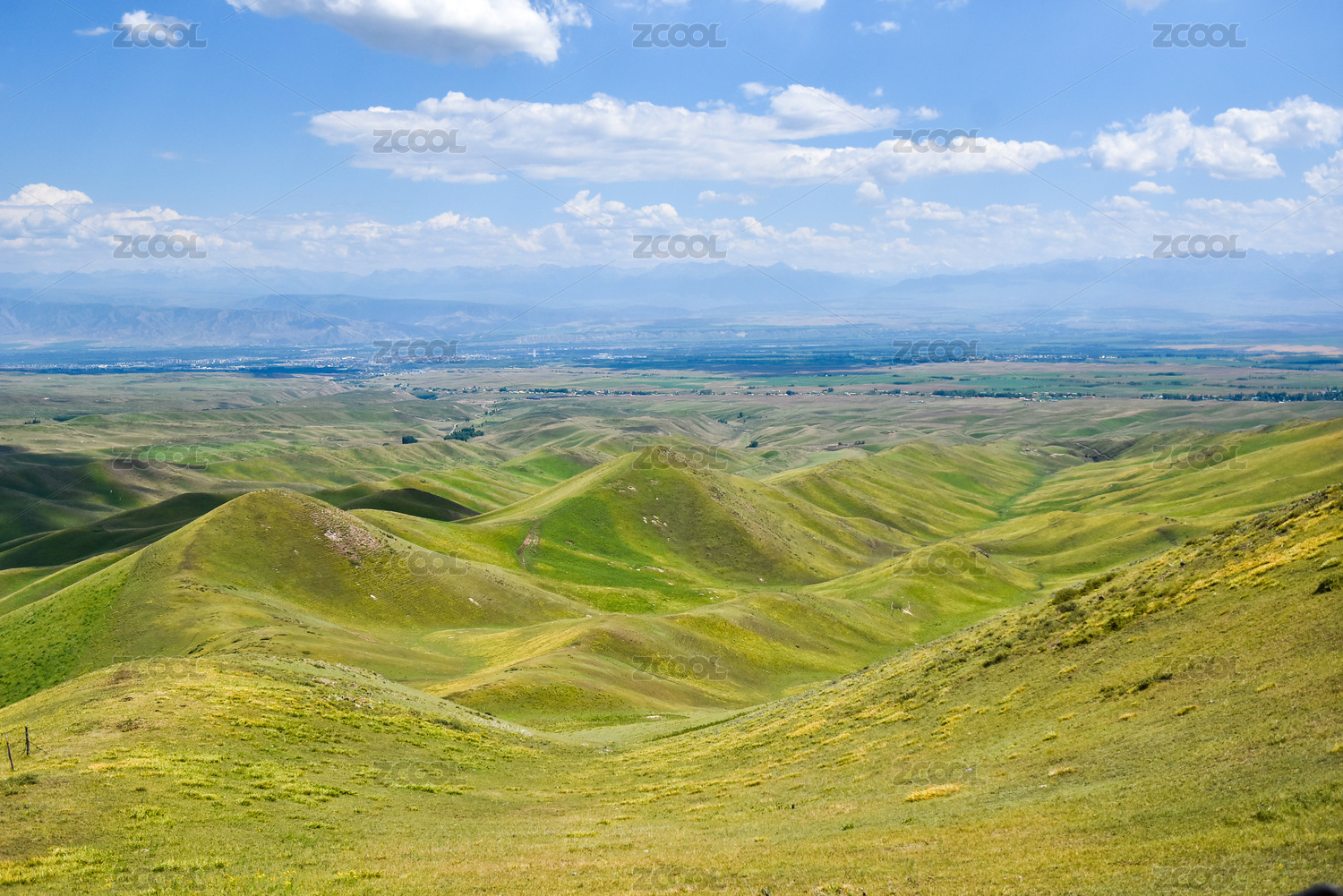 高视角下的中国新疆阿克塔斯草原定情坡风景