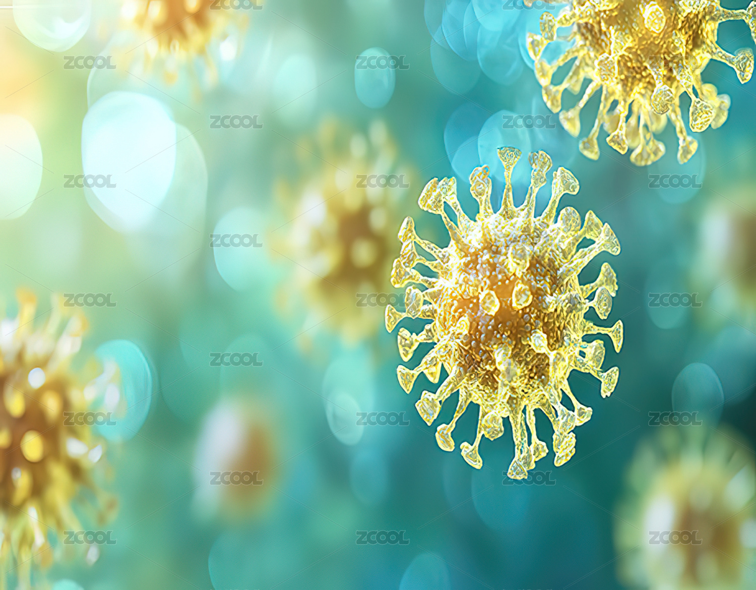 彩色病毒粒子特写