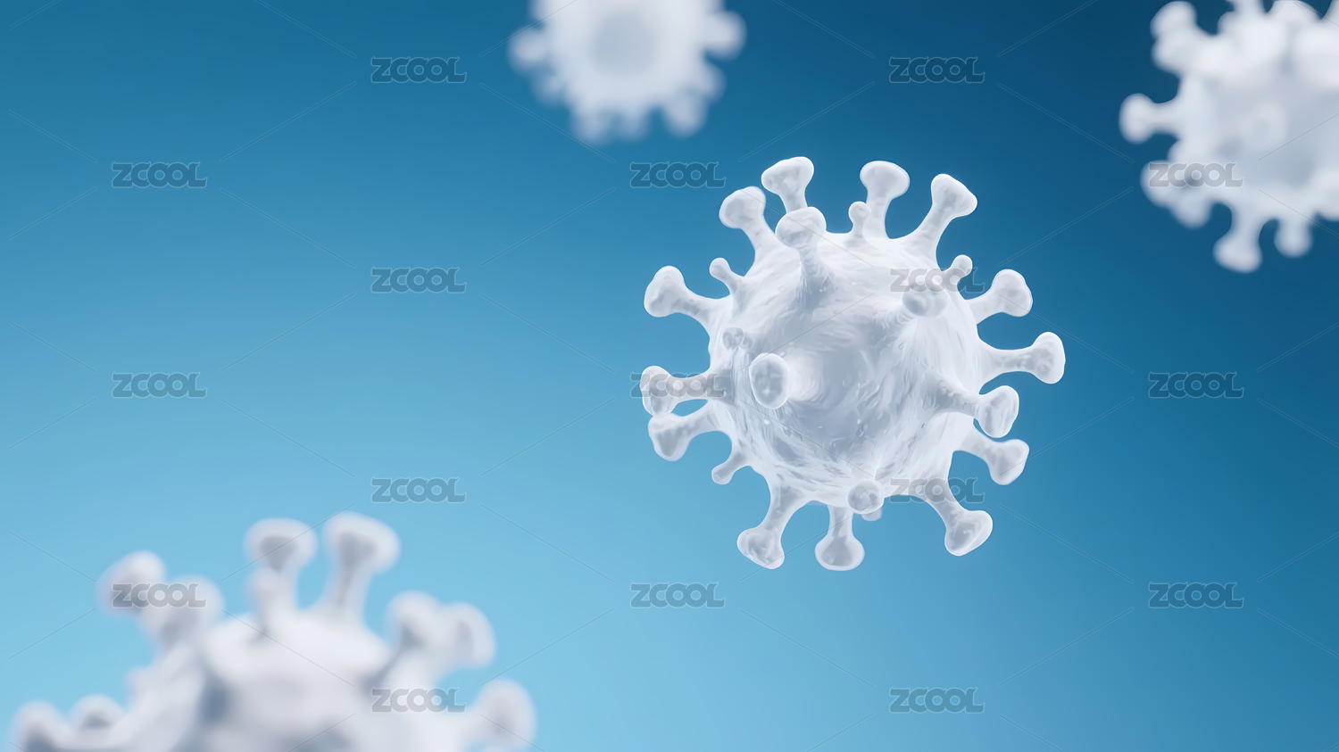 微观视角下蓝白色病毒模型悬浮效果