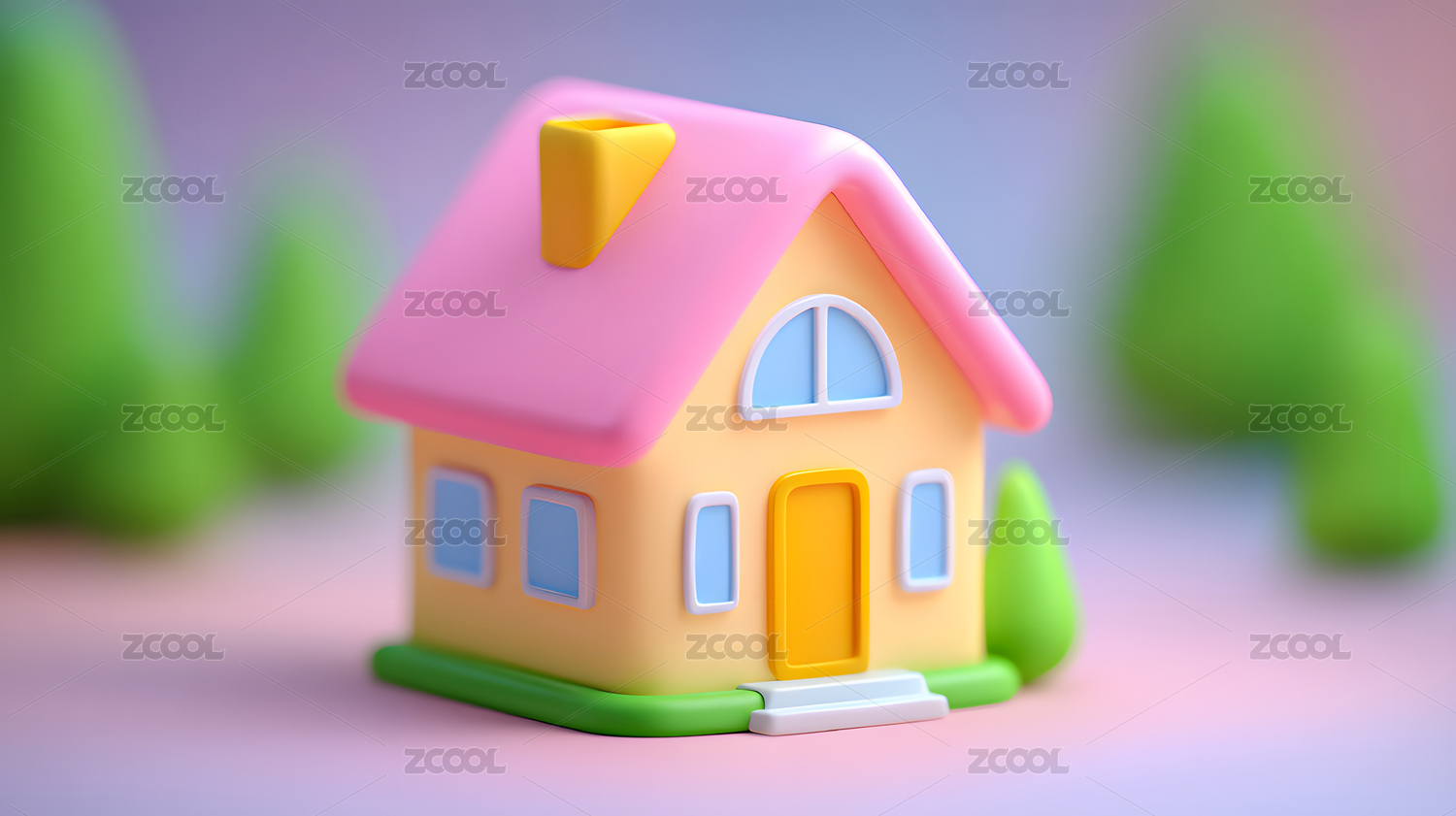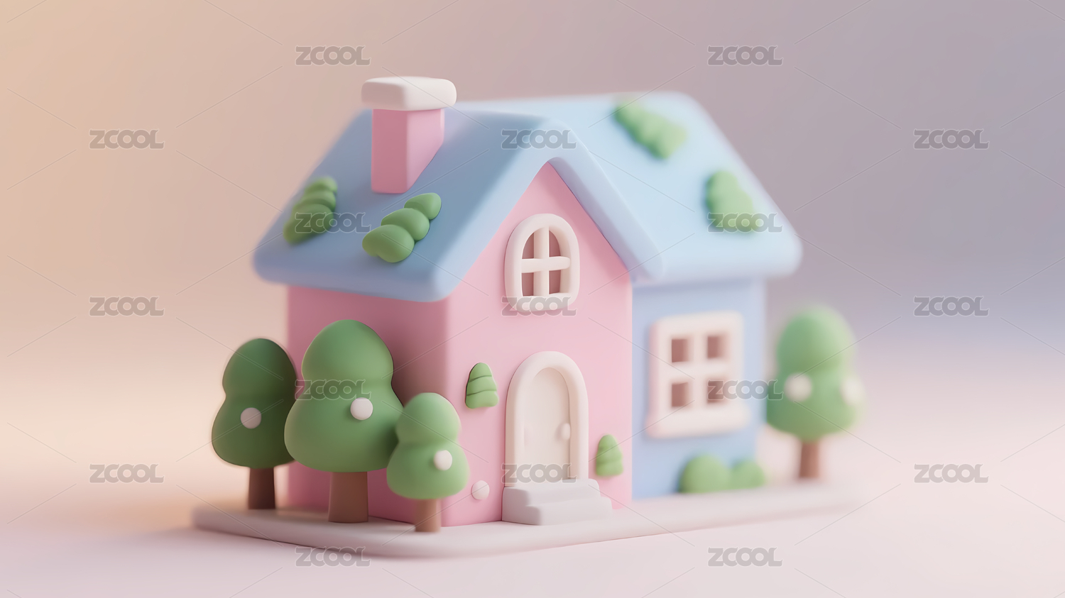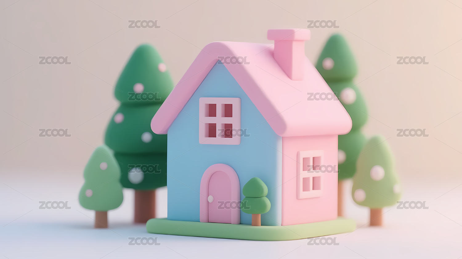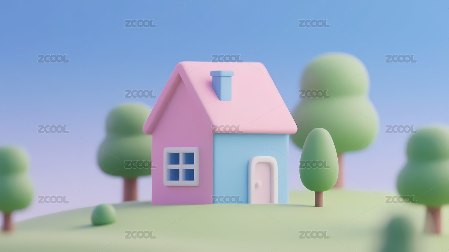 蓝色,绿色,自然,背景,渐变,粉色,树,小屋,建筑,屋顶