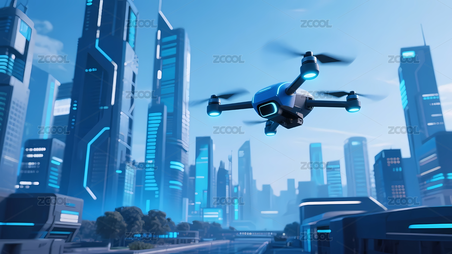 城市上空的科技无人机