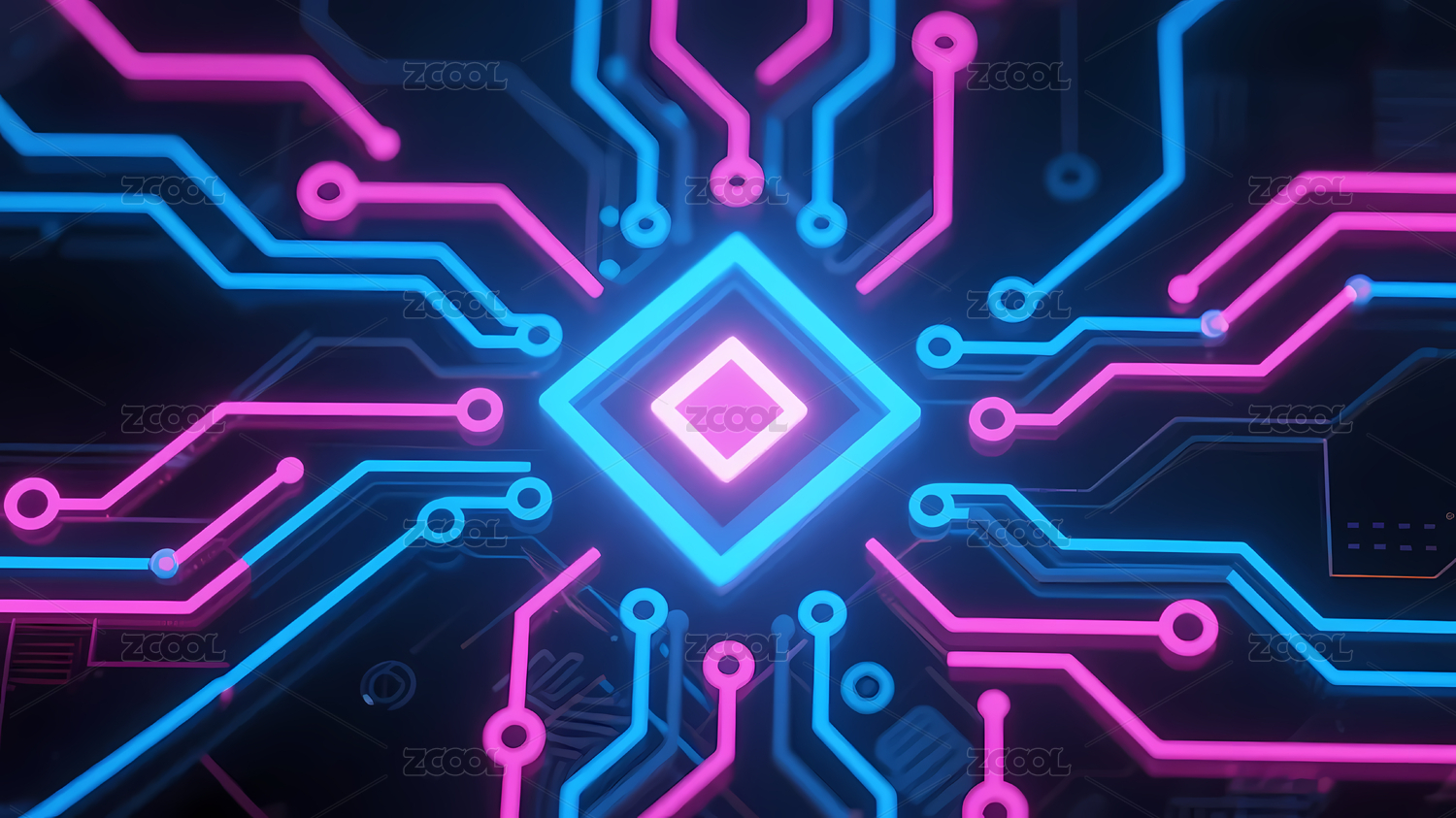 中央蓝芯片紫黄电路