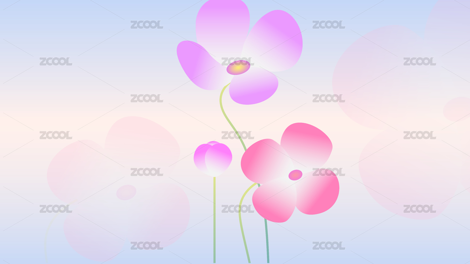 背景,花朵,明亮,渐变,清新,粉红色,浅蓝色,三朵,淡蓝色,浅黄色