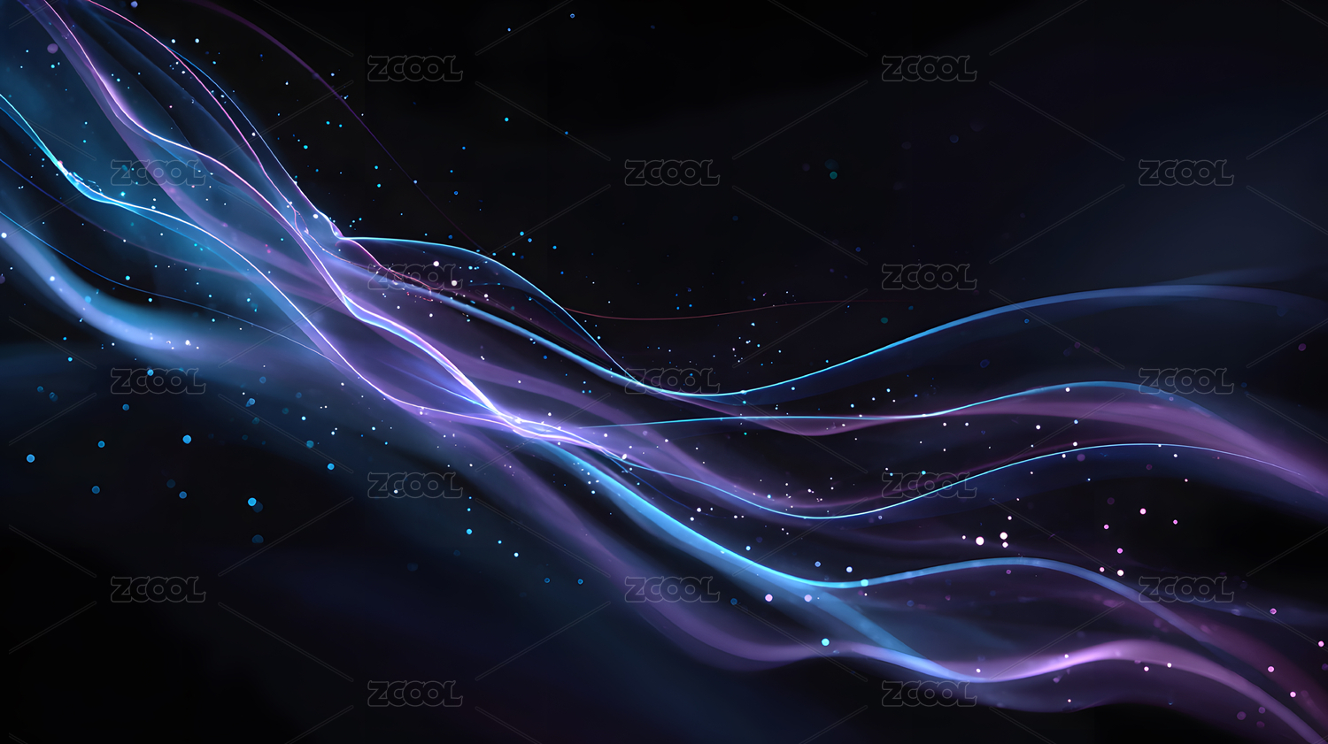 黑底彩光波浪抽象科技背景