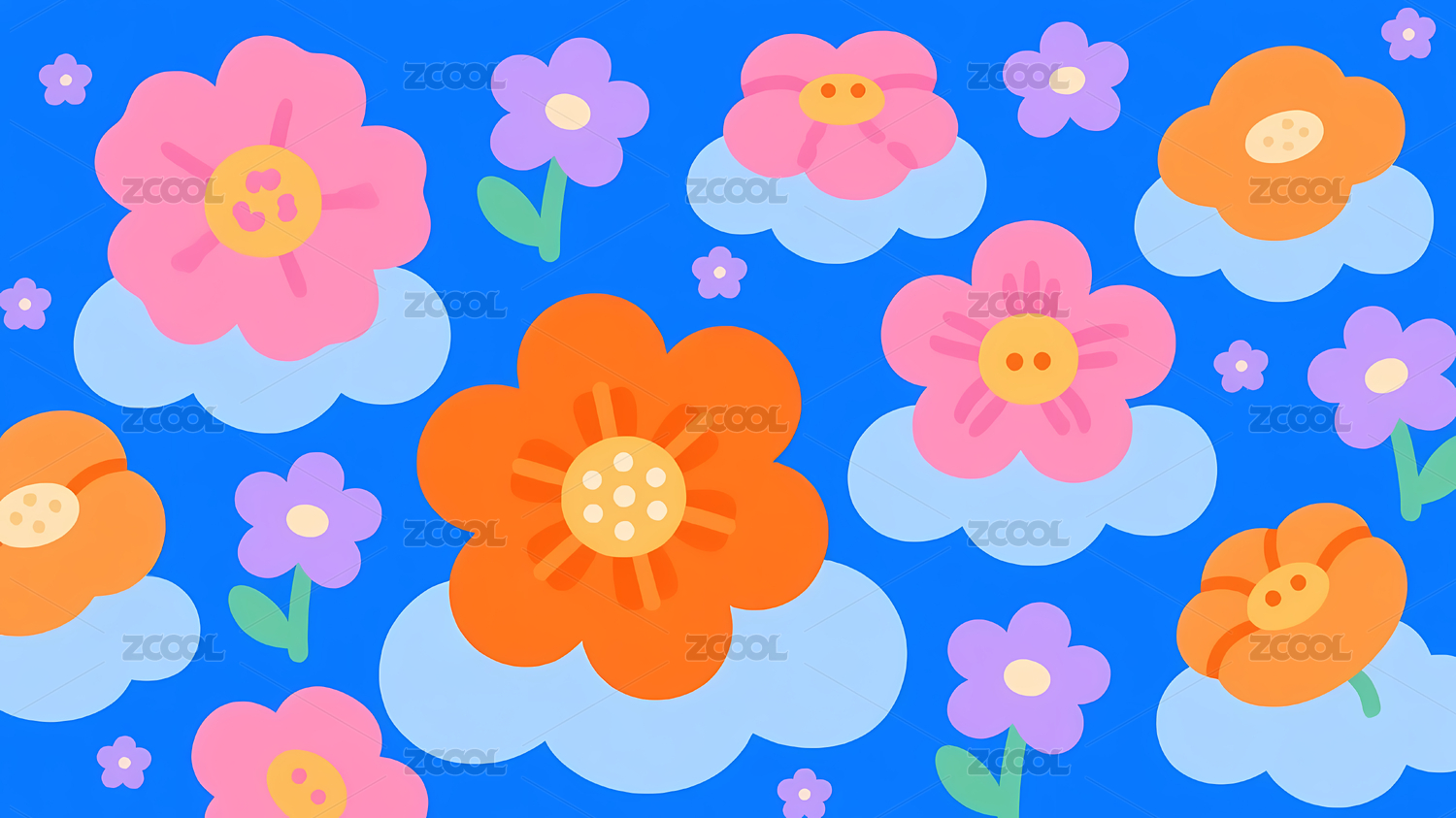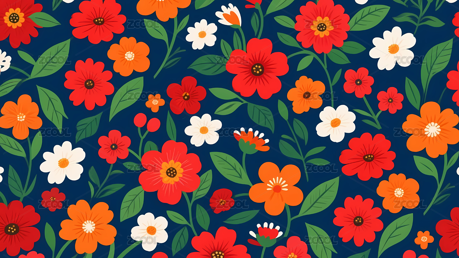 背景,绿色,花朵,黄色,叶子,鲜艳,色彩,橙色,对比,深蓝