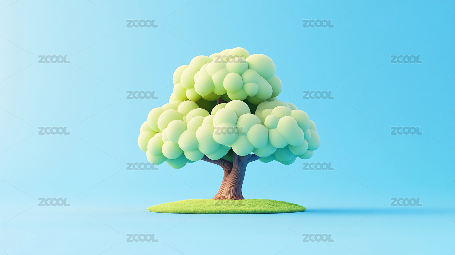 蓝色,渐变,背景,小树,树,天空,清新,宁静,毛绒,浅蓝色