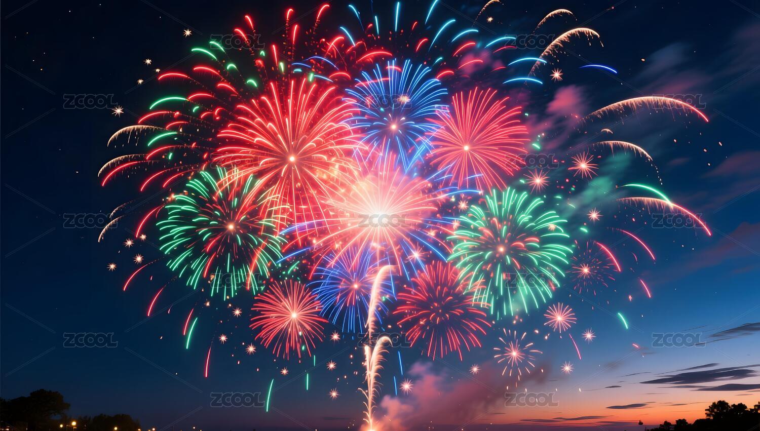 黄色,蓝色,橙色,宁静,粉色,美丽,夜空,烟花,水面,倒影
