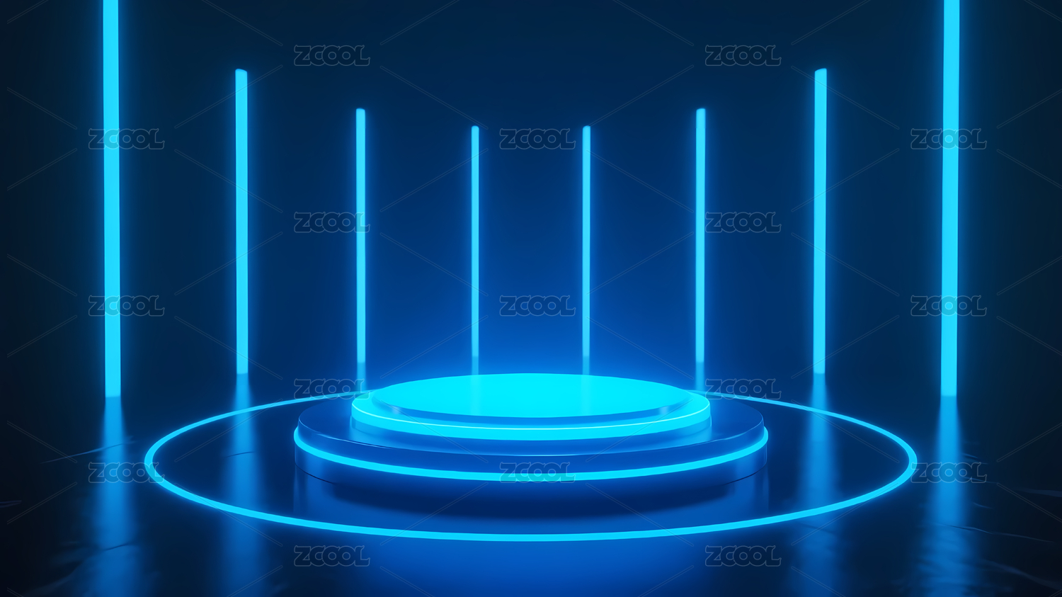 蓝色霓虹圆形平台映深蓝底