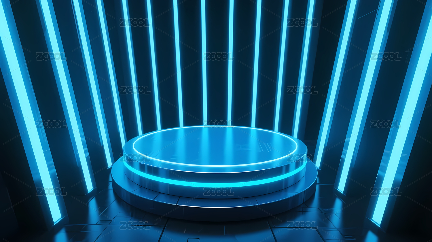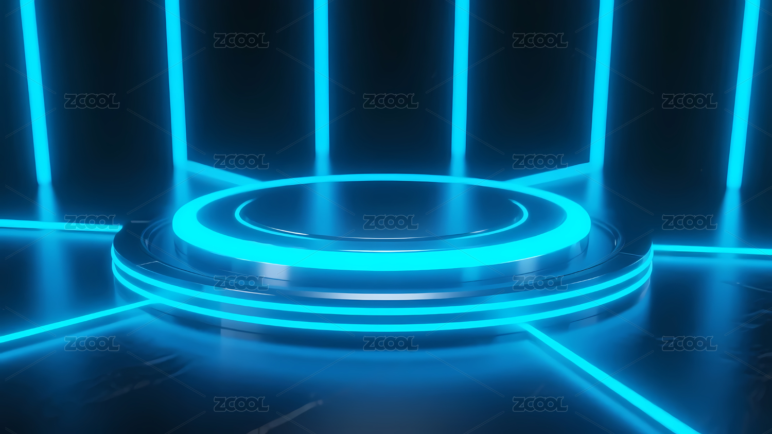 荧光蓝圆形平台与几何线条背景