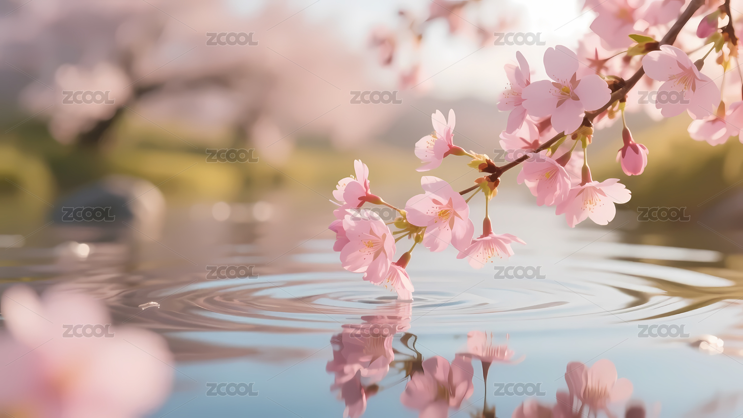 粉色樱花宁静水面涟漪