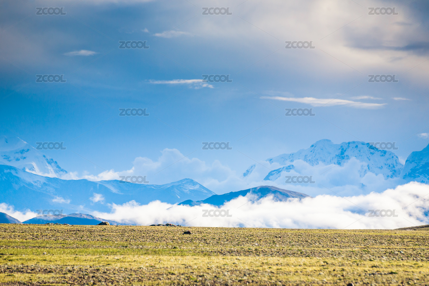 雪山,山峰,积雪,蓝天,白云,山脉,山坡,草地,原野,自然风光