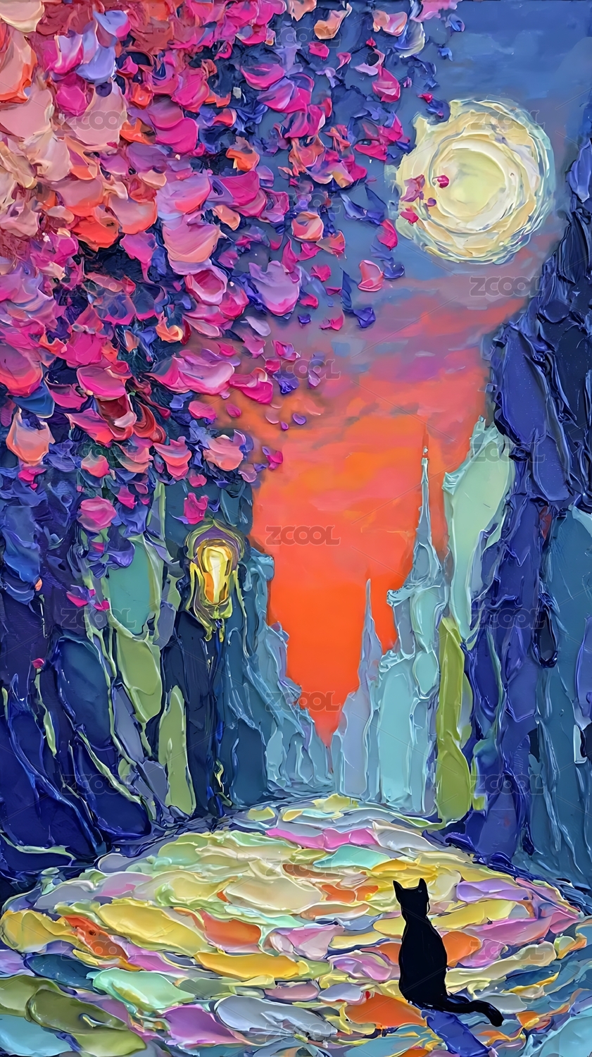 绚丽油画月夜树