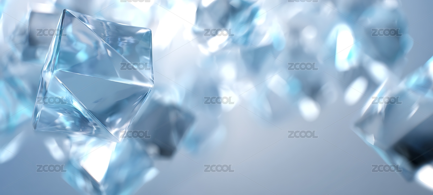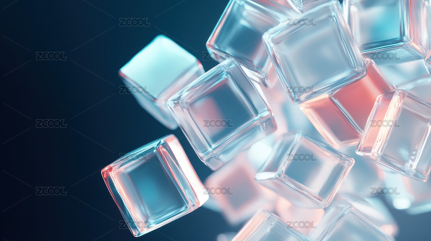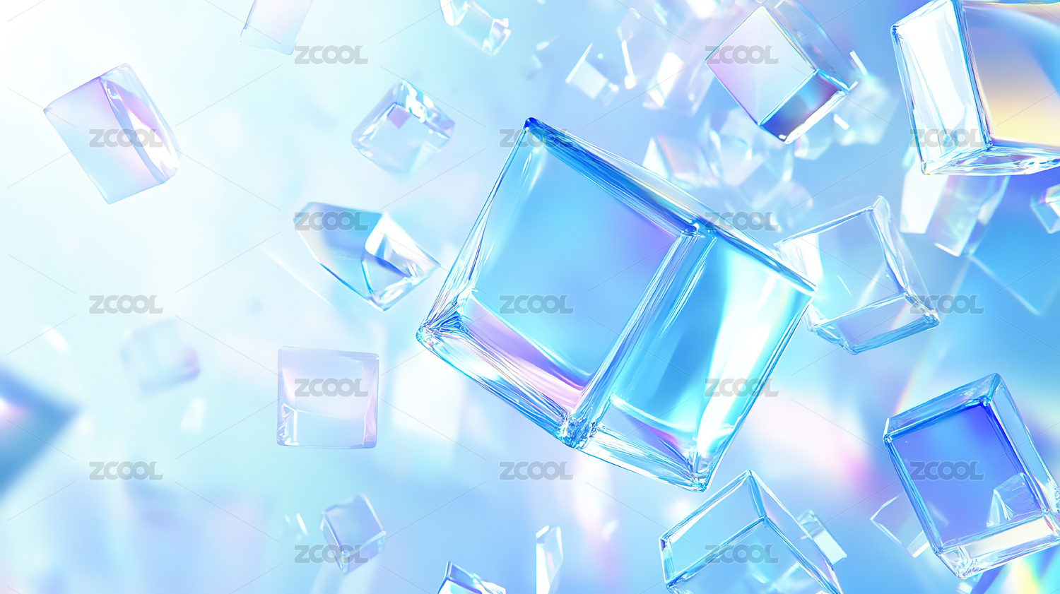 数码彩色透明玻璃立体抽象图形海报网页背景