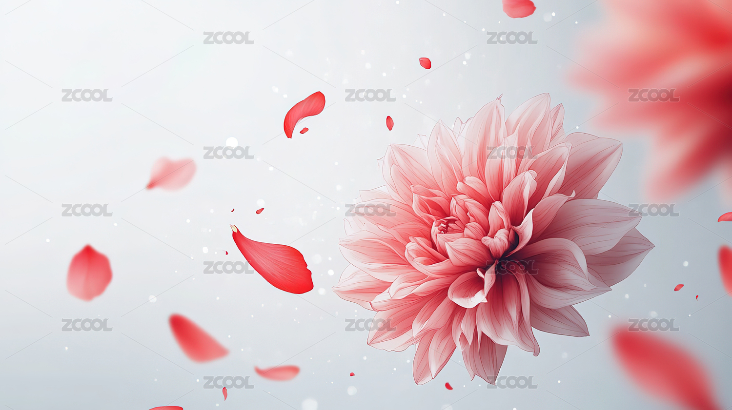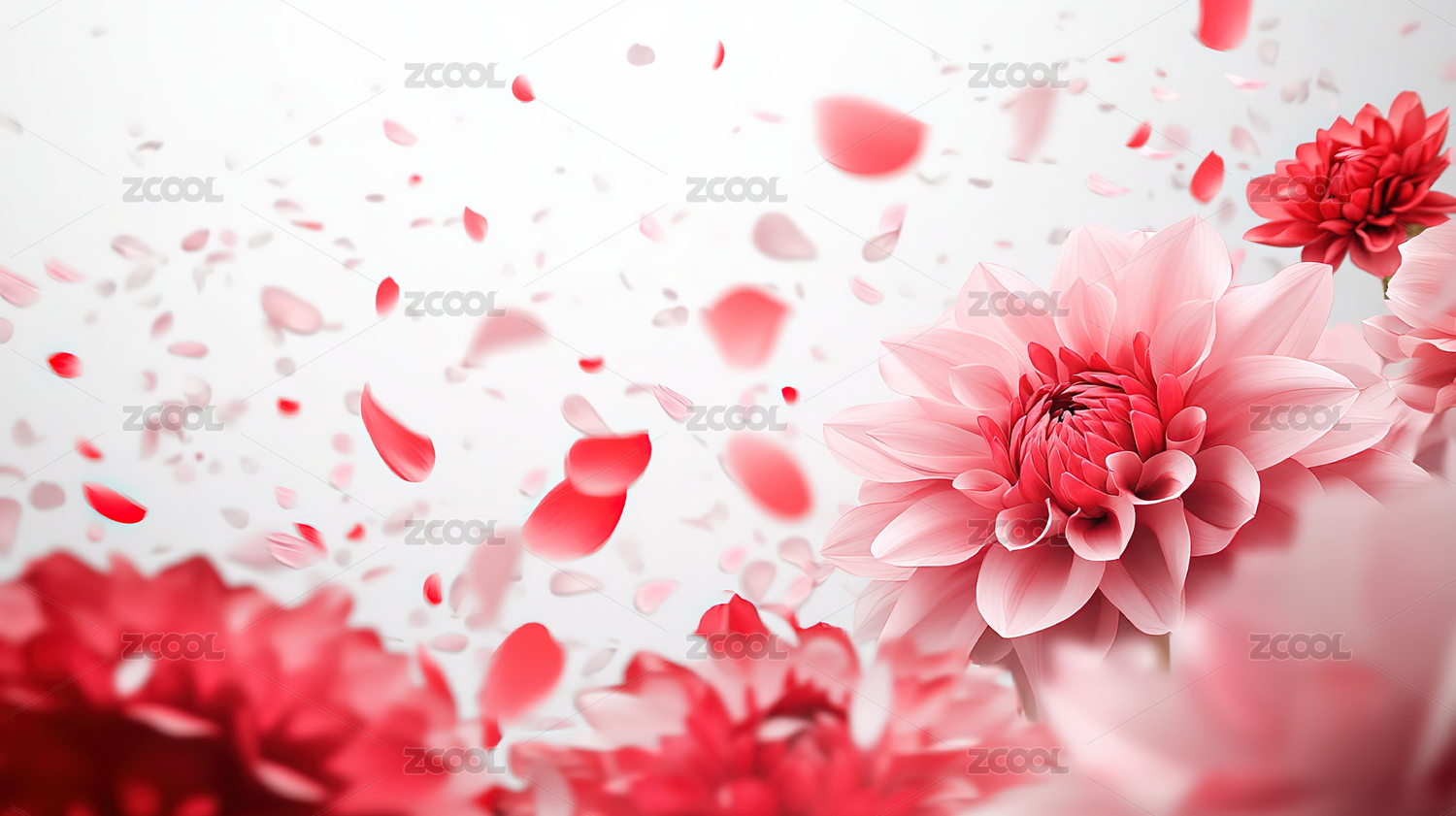 粉色花朵与花瓣飞舞