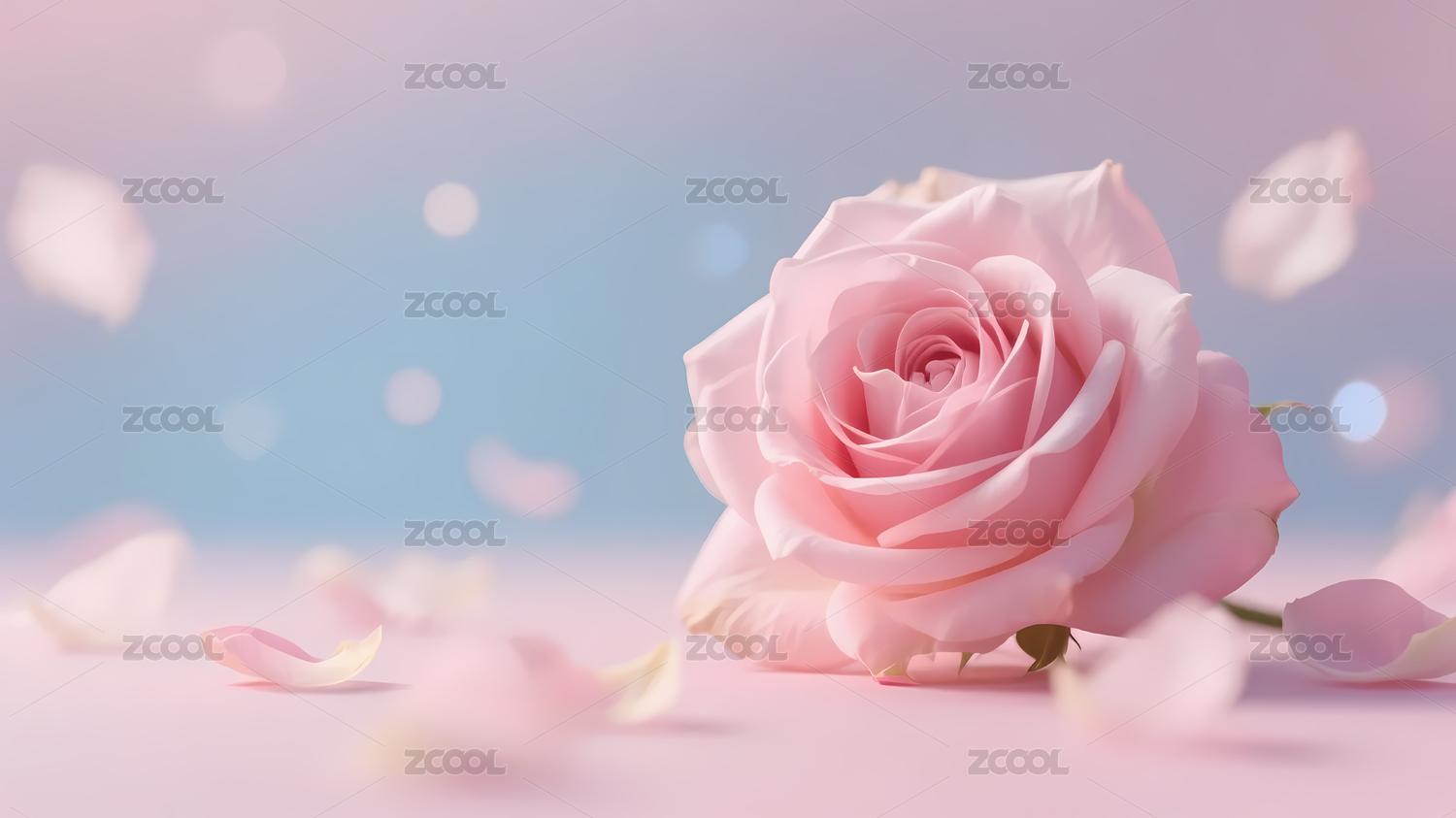 粉色玫瑰花瓣飘落蓝天