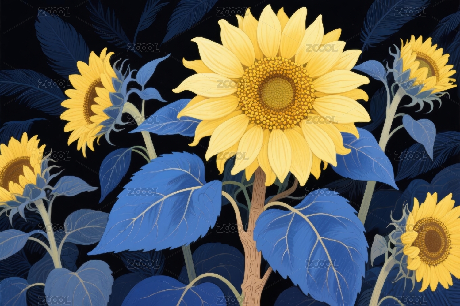 金黄向日葵群像插画