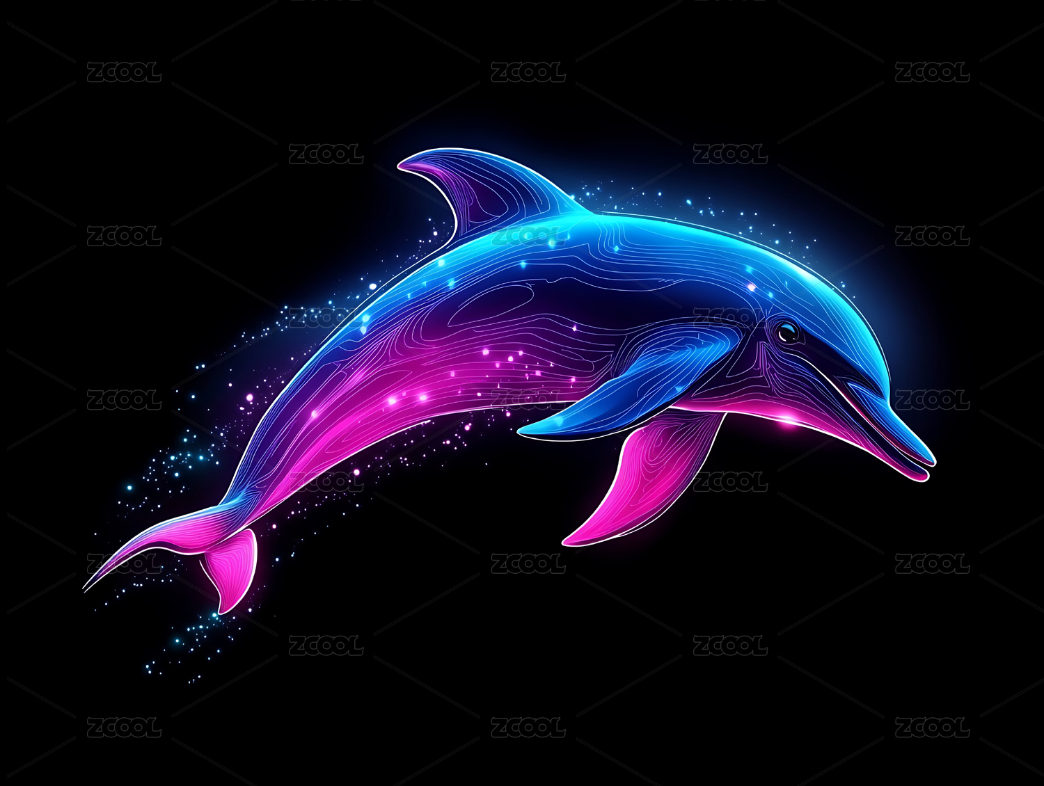 海豚彩色发光赛博朋克暗空间渐变风